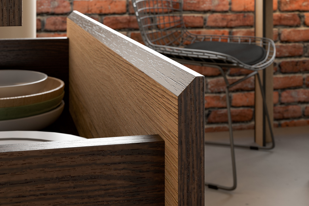 - Интегрированная ручка - трапециевидный спил окутанный кромкой 26 мм венге