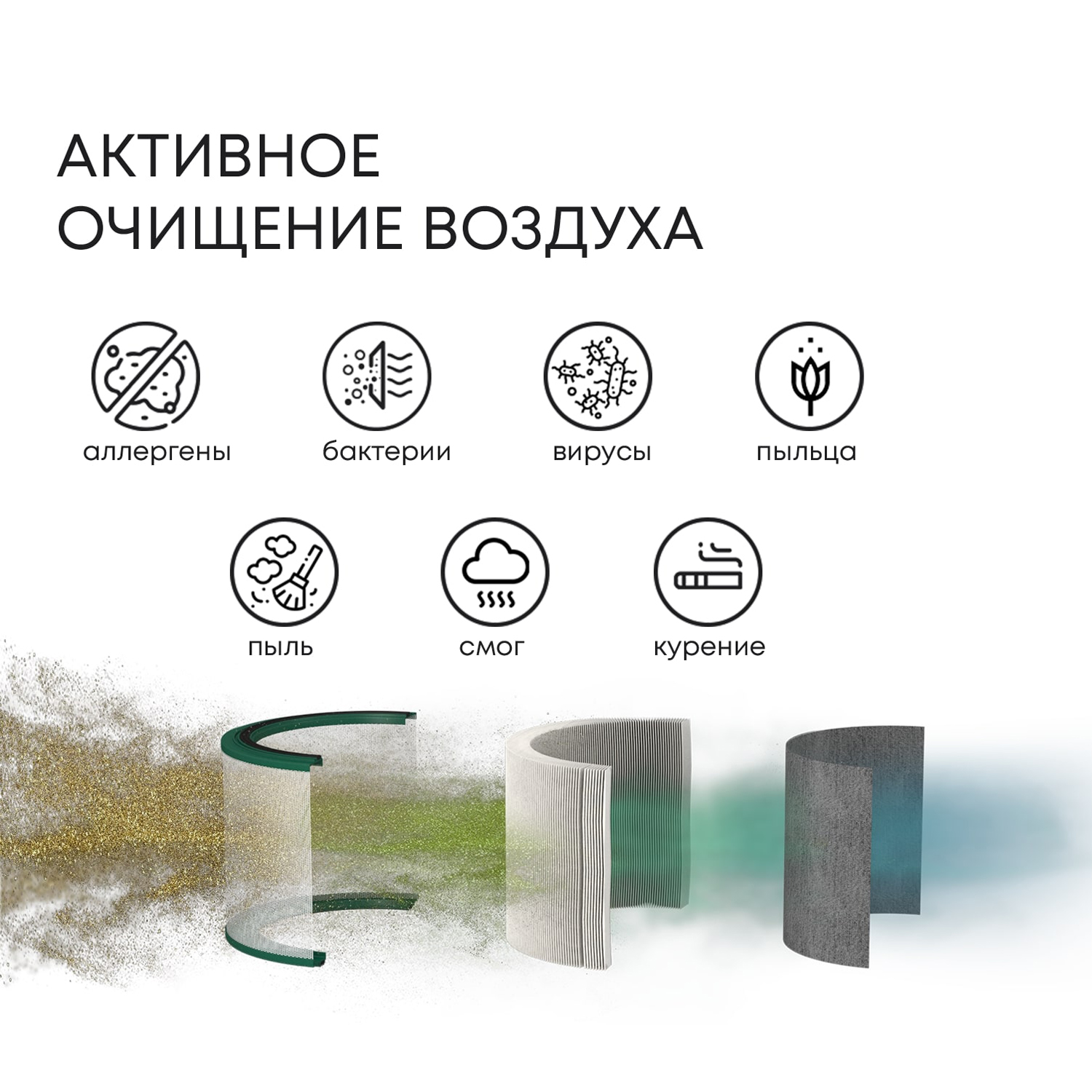 Фильтры в блоке очистки воздуха поддерживают здоровый климат в помещении и устраняют неприятные запахи. Угольный фильтр успешно нейтрализует различные запахи, включая запах домашней еды, сигаретного дыма и прочие.