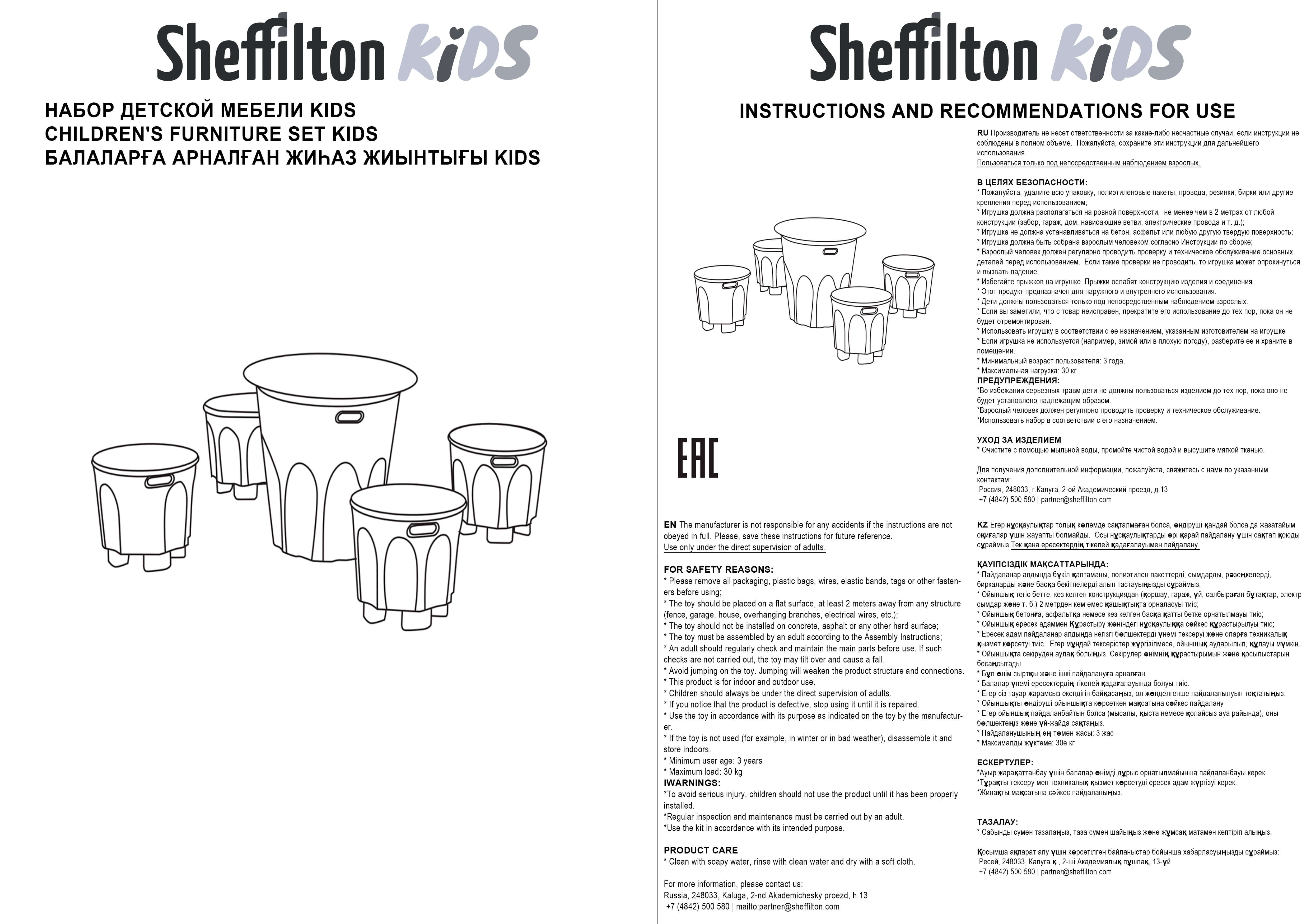 Набор стол со стульями выполнен из высокопрочного полипропилена, что обеспечивает жесткость и долговечность. Стол и стулья имеют круглые крышки с закругленными краями, что безопасно для использования. Легкий и удобный набор, подойдет для организации досуга детей как в помещении, так и на улице. Максимальная нагрузка на один стульчик - 30кг