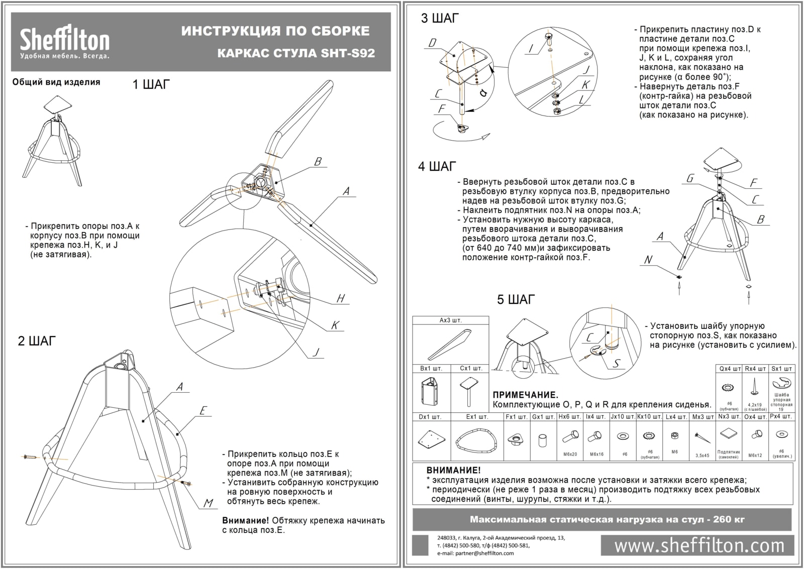 - Максимальная статическая нагрузка - 260 кг.