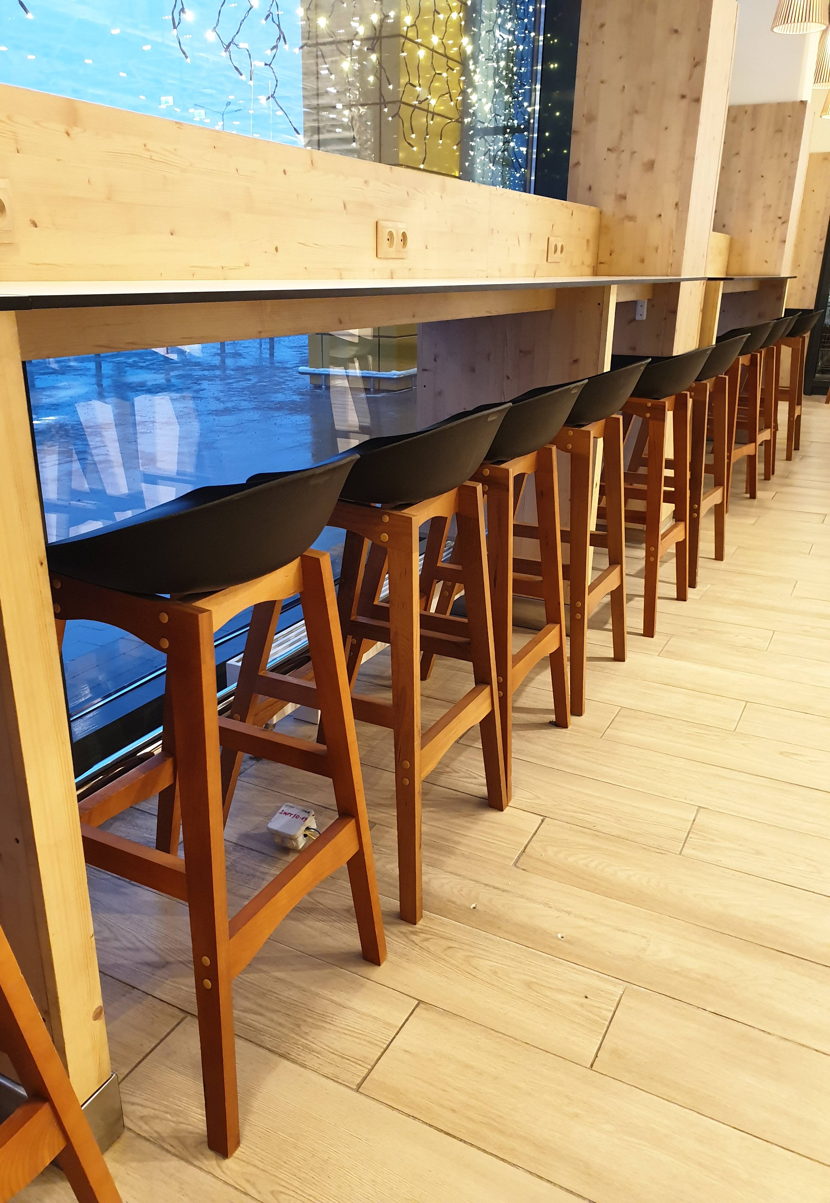 Сидение выполнено из полипропилена с армирующими добавками и выдерживает продолжительные нагрузки. Каркас выполнен из массива древесины с последующим тонированием и покрытием лаком.