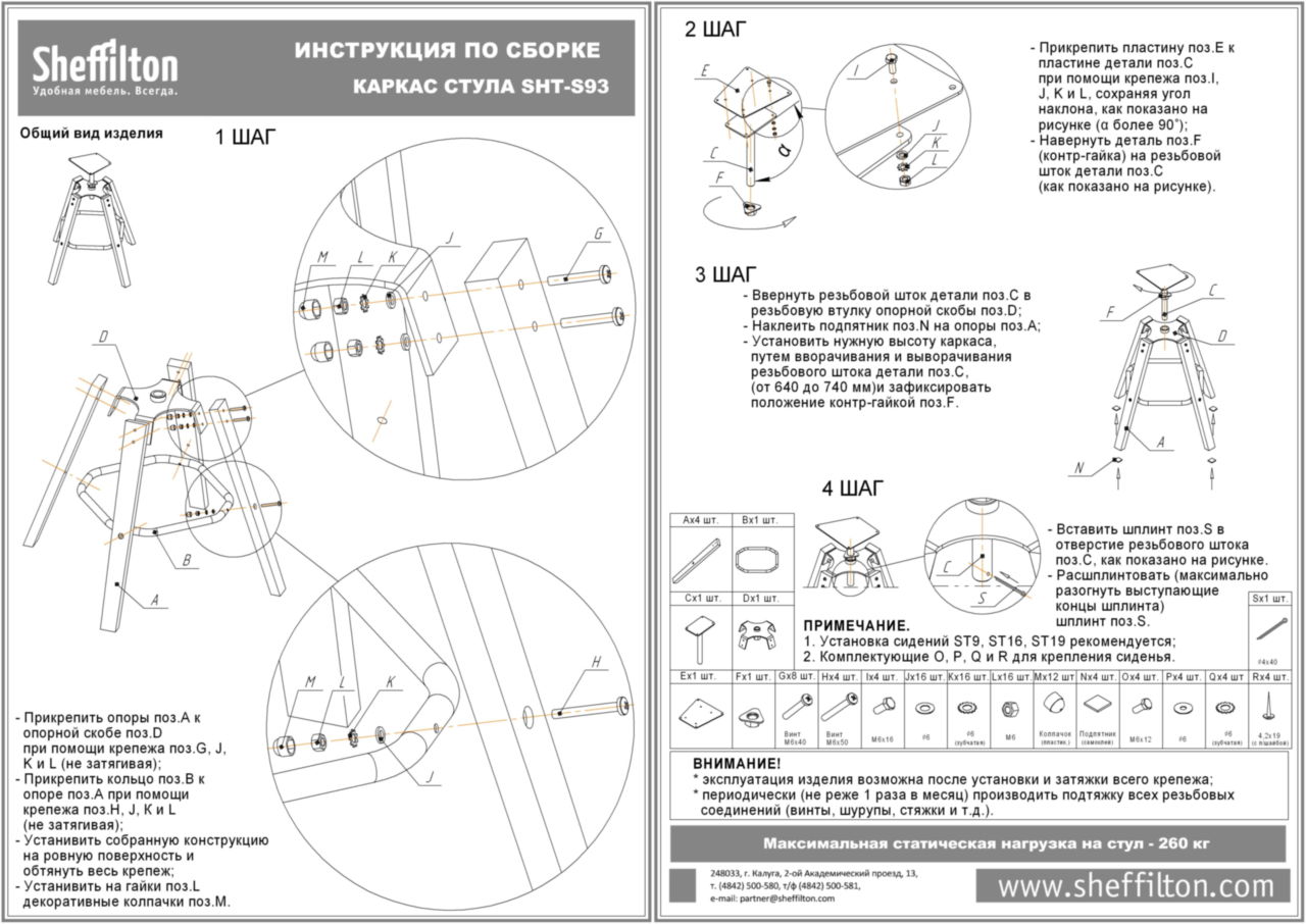 НАДЕЖНЫЙ КАРКАС! Специальные подпятники обеспечивают защиту каркаса от царапин, тем самым увеличивая срок службы. Высота каркаса от полубарного 640 мм. до барного 745 мм. Максимальная статическая нагрузка - 260 кг.