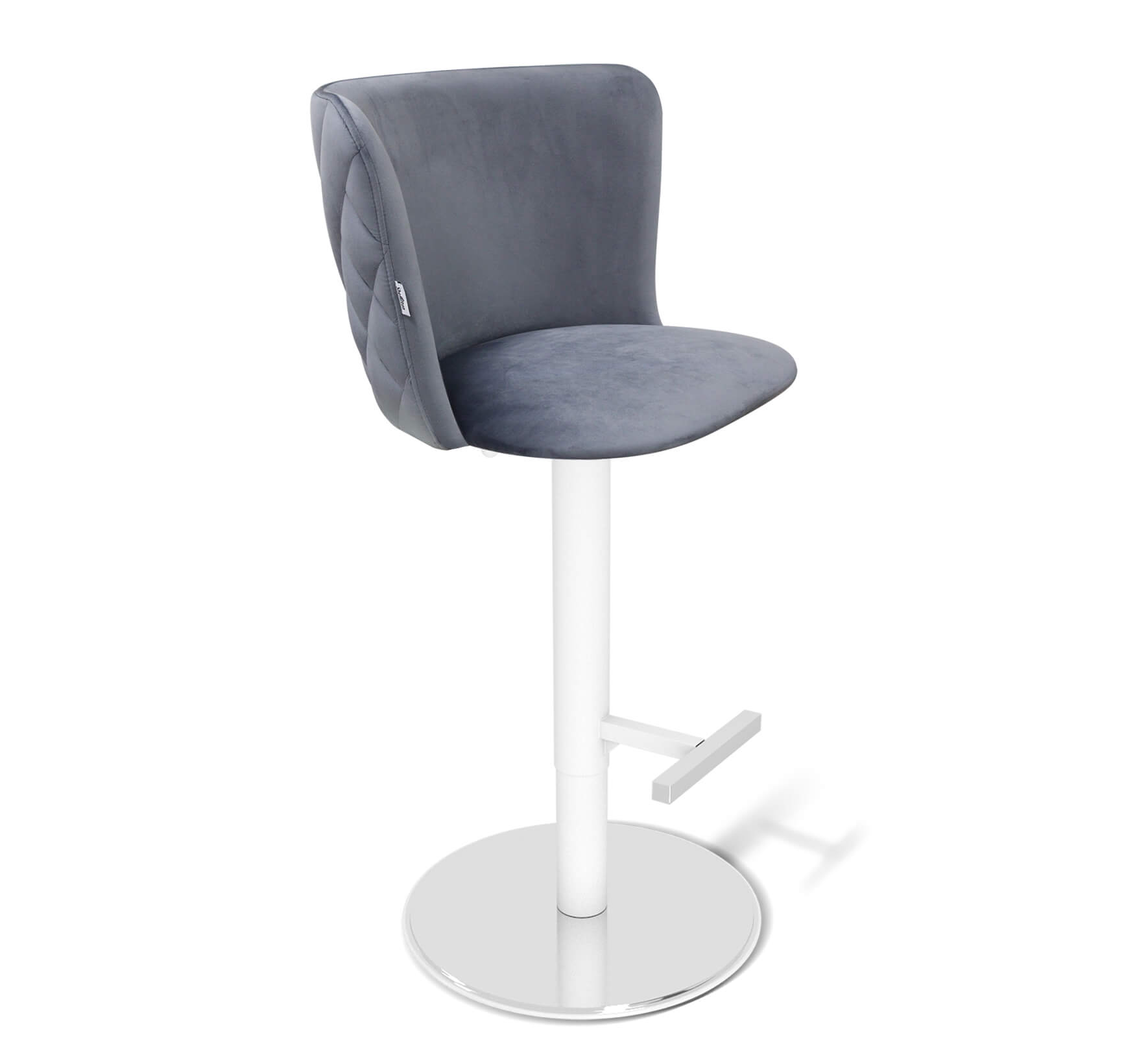 СТИЛЬНЫЙ ДИЗАЙН. Каркас выполнен из металла с белой матовой краской и блестящим гальваническим хромом. Модель располагается на одной высокой ножке цилиндрической формы. Внизу она плавно переходит в основание, сделанное в виде круга.Стильный дизайн заключен в королевской форме сидения и оригинальной отстрочке спинки. Рисунок на спинке сидения придает изделию эффектный вид. Нежная расцветка микровелюра внесет уют и воздушность в интерьер.