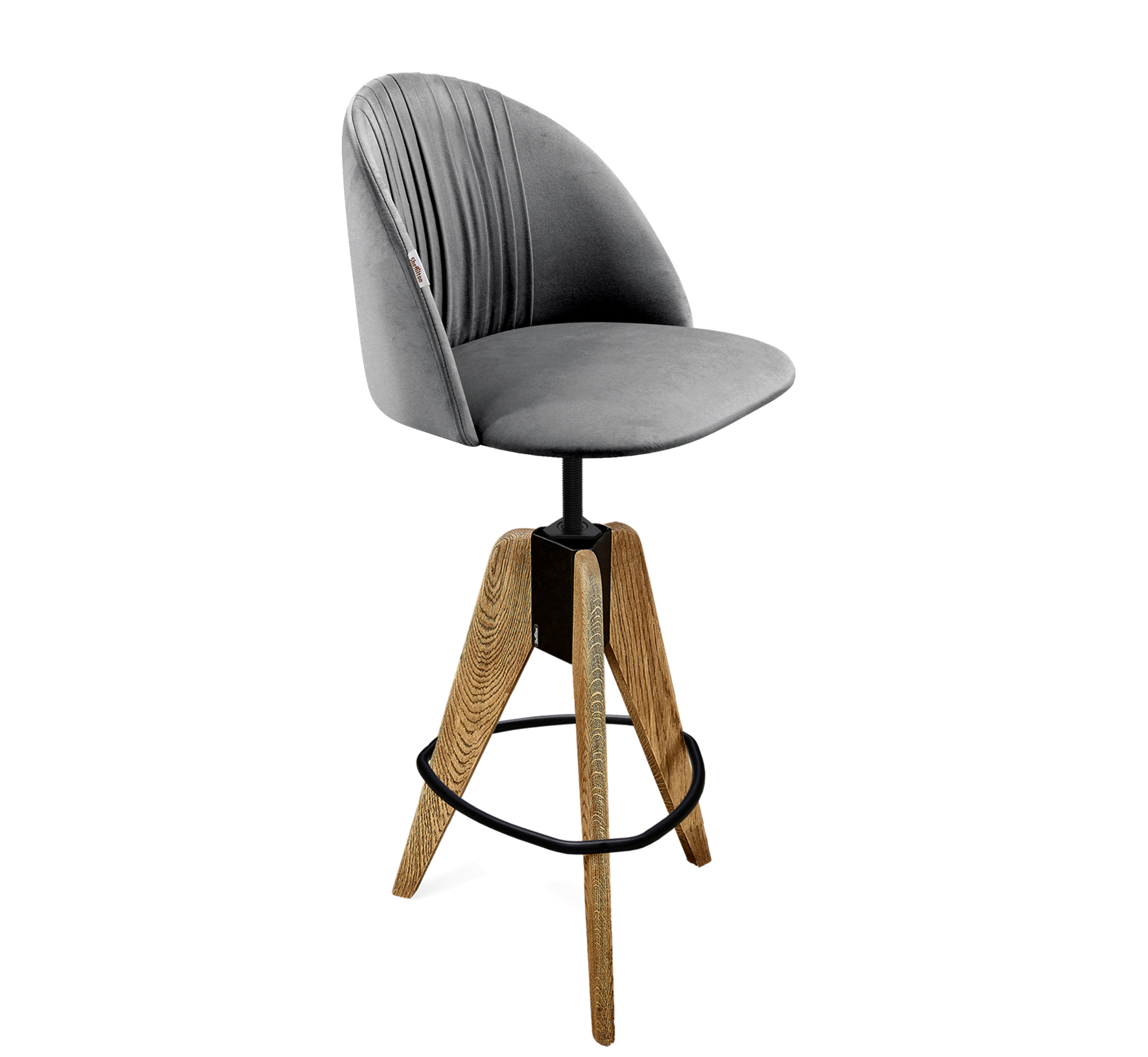 СТИЛЬНЫЙ ДИЗАЙН заключен в драпировке внутренней части спинки. Красивые продольные складки из мягкого микровелюра дридают изделию особый шарм.Скругленные линии спинки и сидения подчеркивают модный силуэт. Натуральный и стильный каркас стула! Винтовой механизм позволяет использовать каркас как полубарный и барный стул. Естественная текстура дерева в комплекте с металлическими деталями придает готовому изделию стильный и дорогой вид. Дерево обработано технологией "браширование" для большего эффекта природного рисунка древесины.