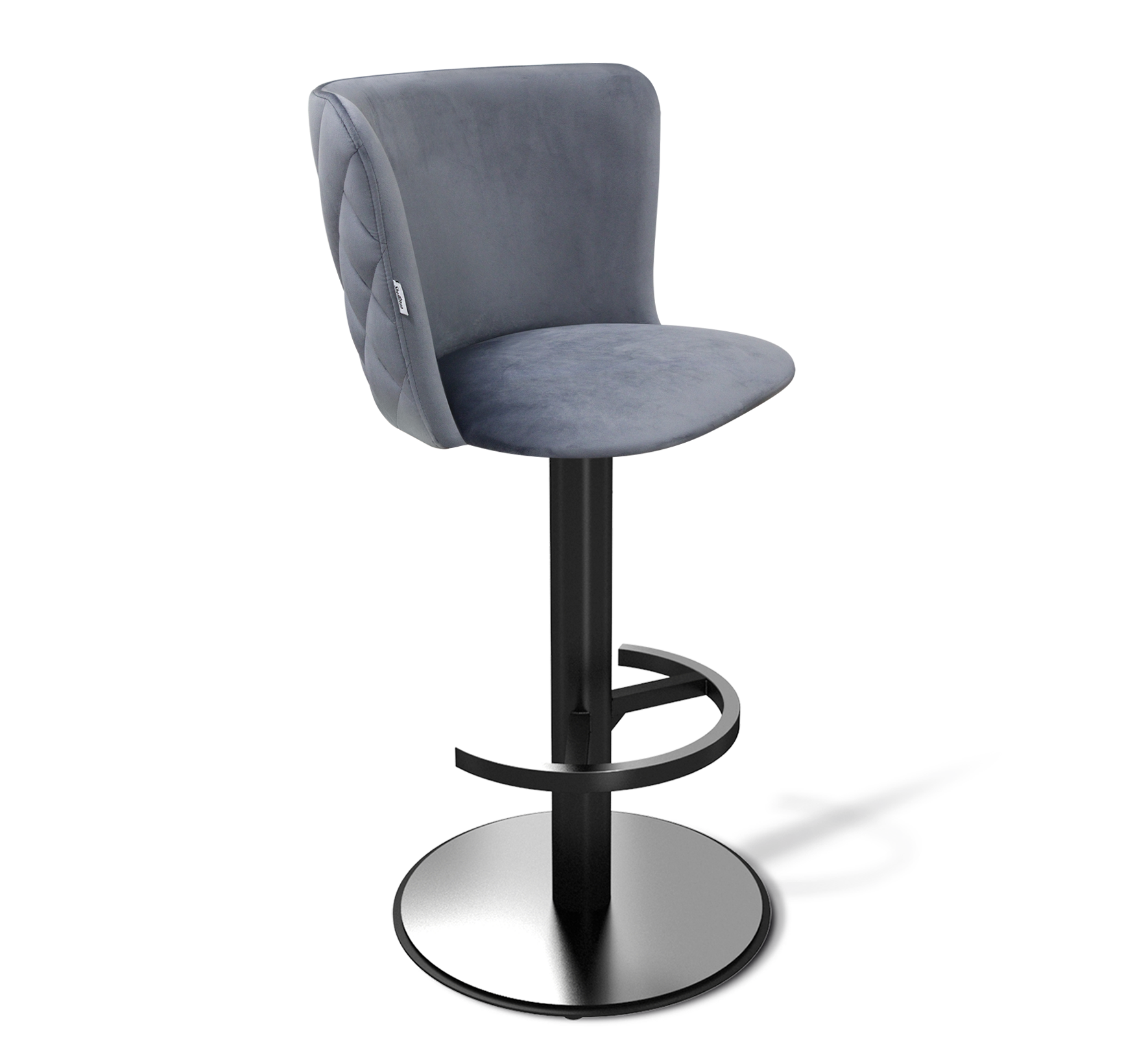 Основание каркаса покрашено в черный цвет. Подножка барного стула в виде полукруга и основание имеют накладки из нержавеющей стали, которые делают его еще более строгим и стильным.
