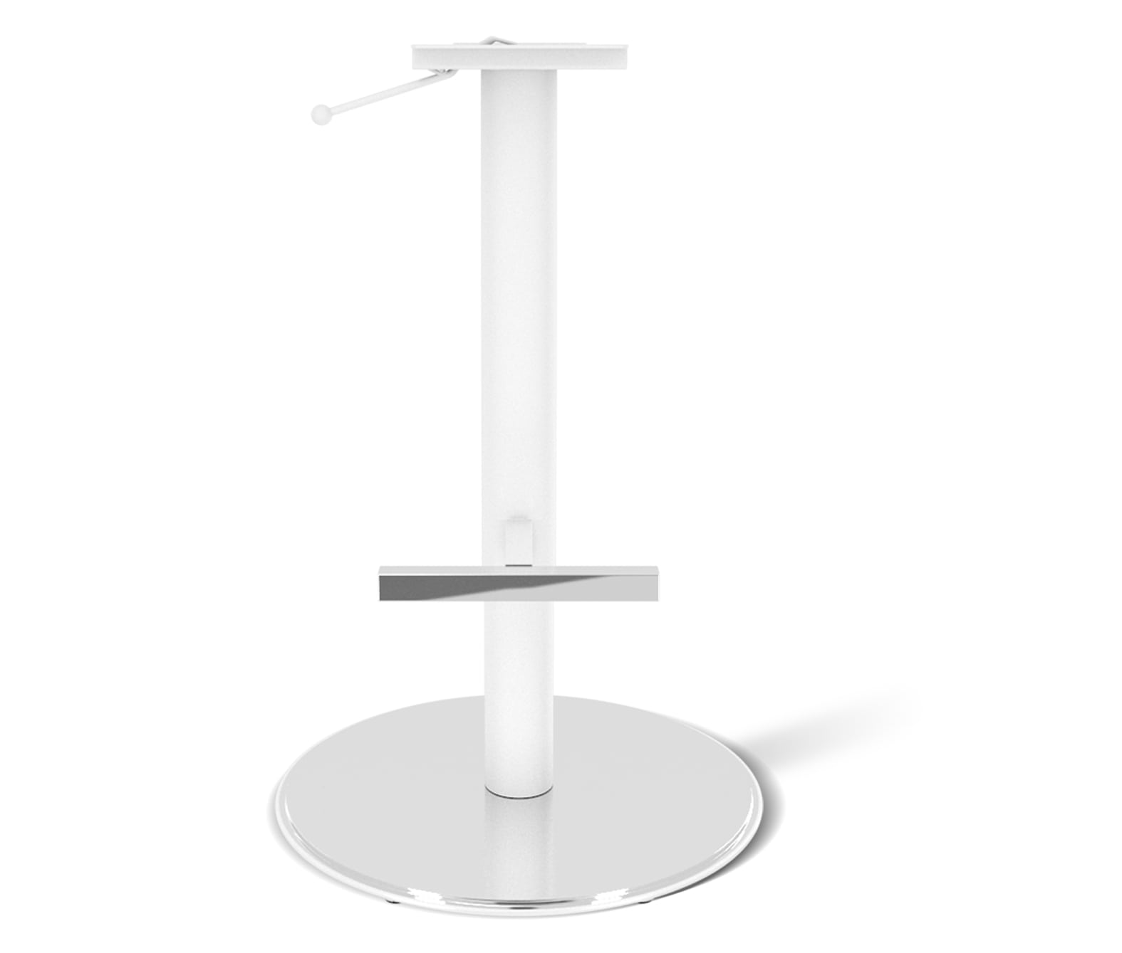 Каркас выполнен из металла с белой матовой краской и блестящим гальваническим хромом. Модель располагается на одной высокой ножке цилиндрической формы. Внизу она плавно переходит в основание, сделанное в виде круга.