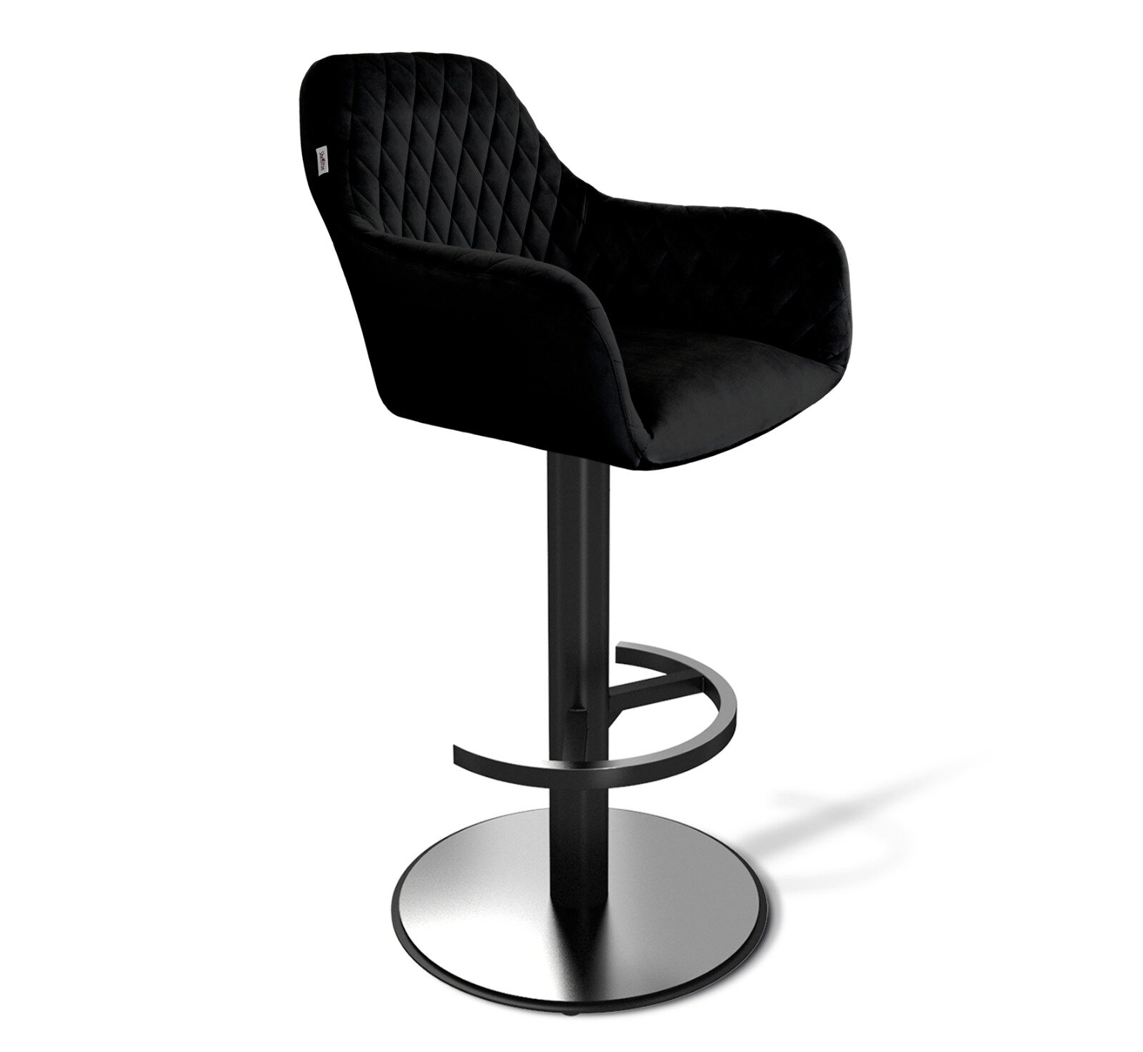 Основание каркаса покрашено в черный цвет. Подножка барного стула в виде полукруга и основание имеют накладки из нержавеющей стали, которые делают его еще более строгим и стильным.