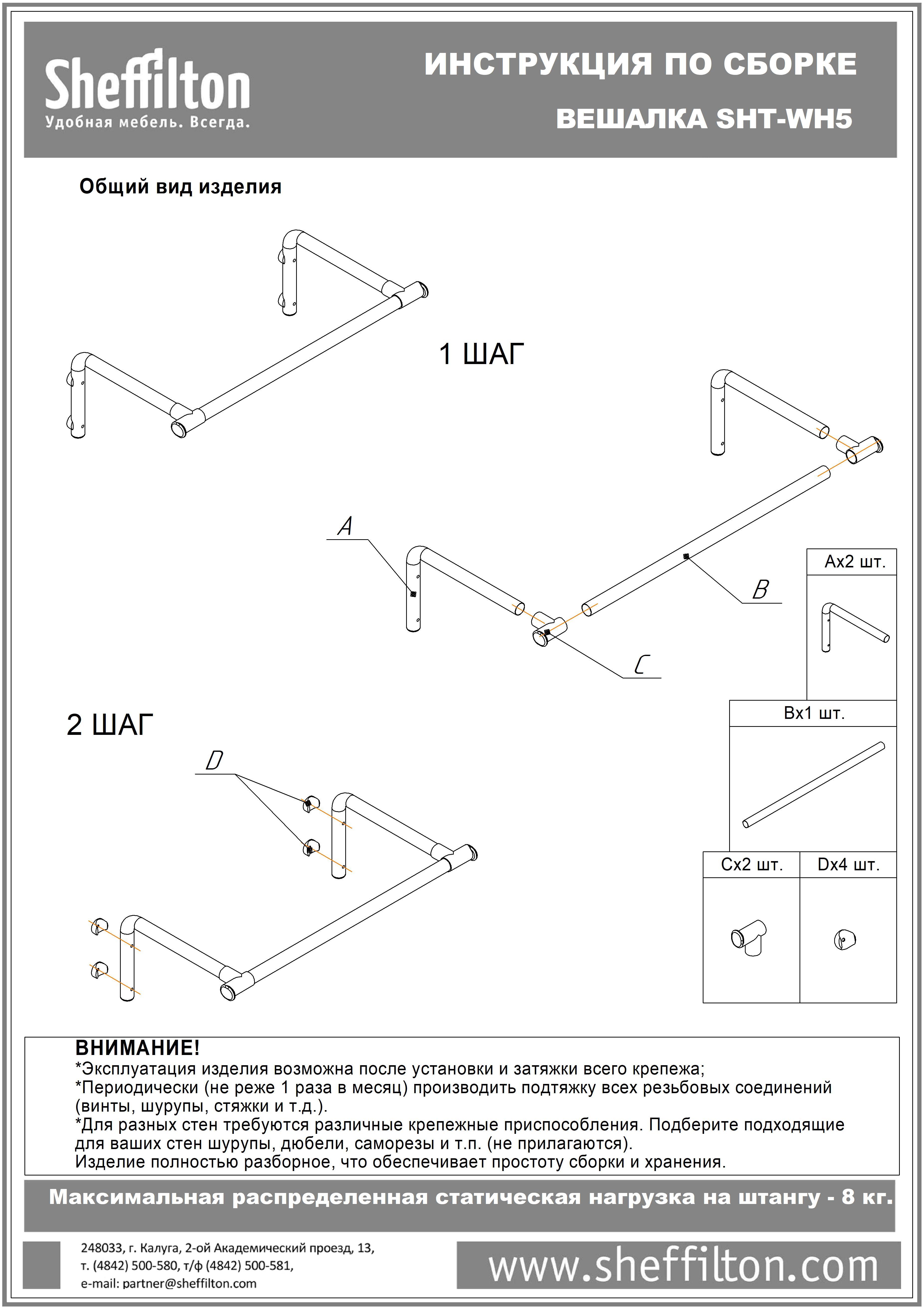 Максимальная распределенная статическая нагрузка на штангу - 8 кг.