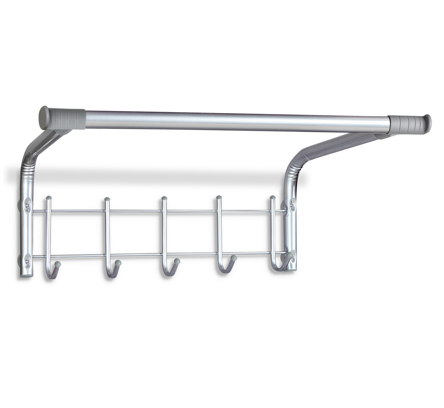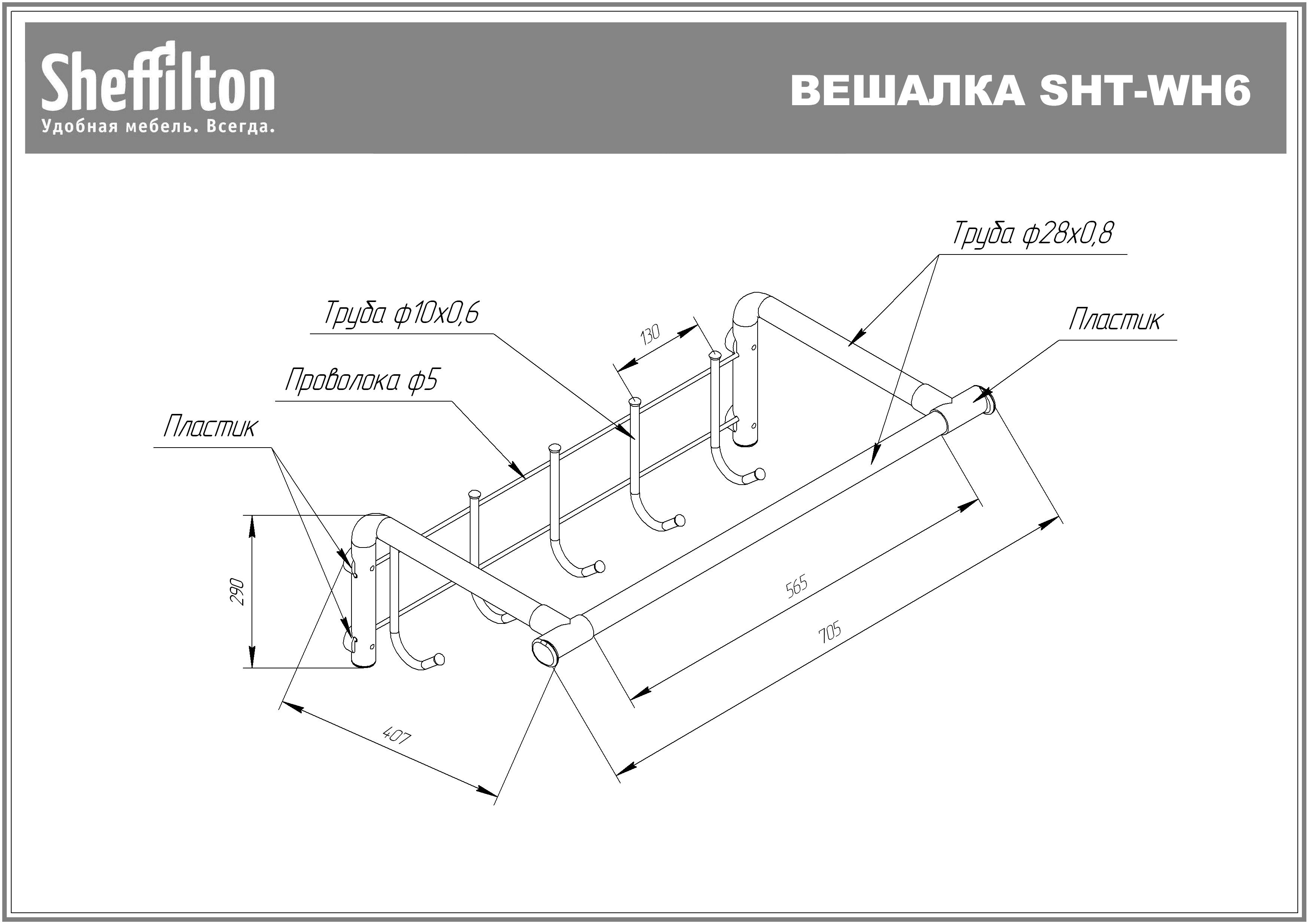 Вешалка выполнена из металла, диаметр/толщина 28х0,8 мм. и 10х0,6 мм., проволоки, диаметром 5 мм. и пластиковой фурнитуры.