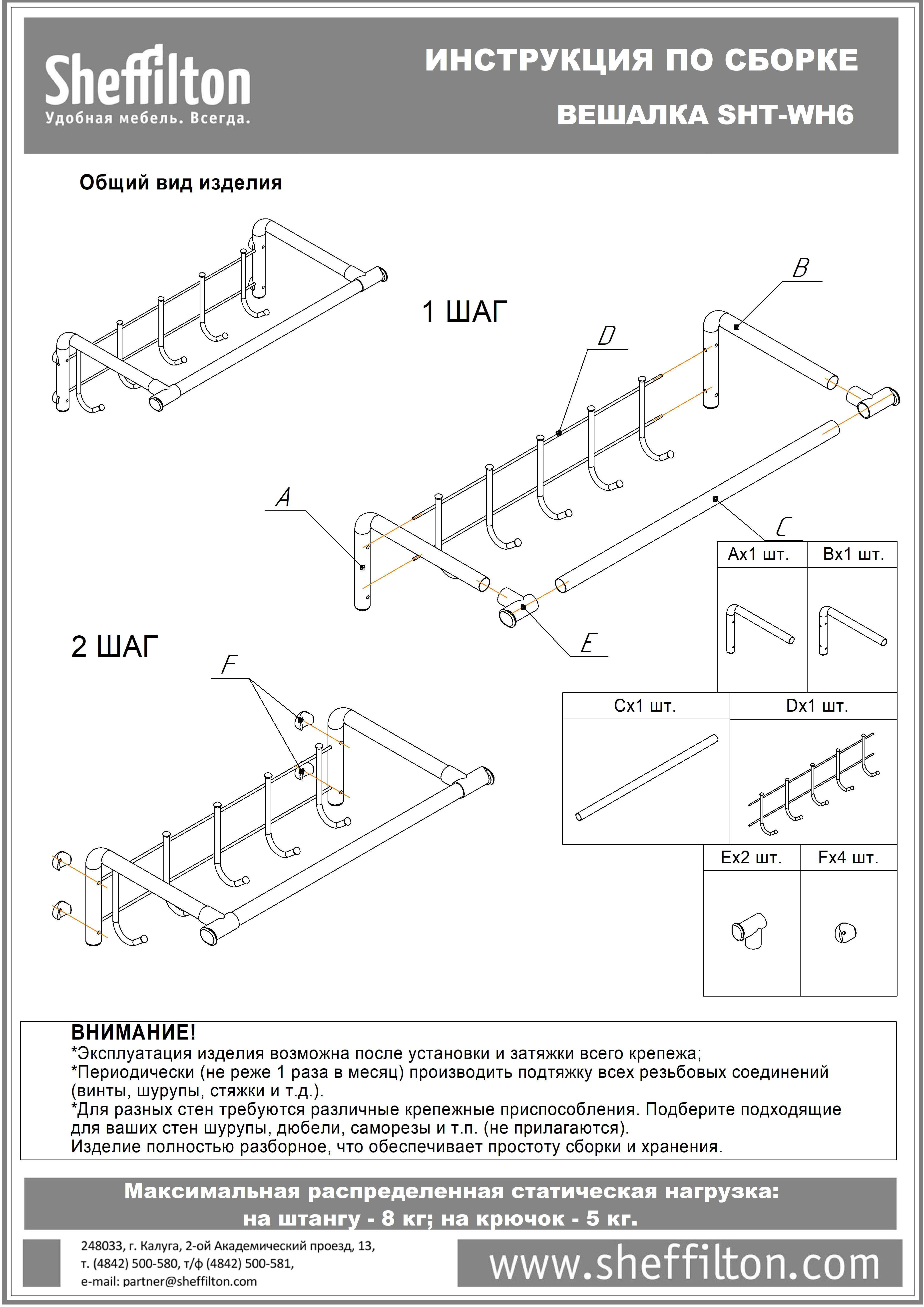 Максимальная распределенная статическая нагрузка на крючок - 5 кг., на штангу - 8 кг.