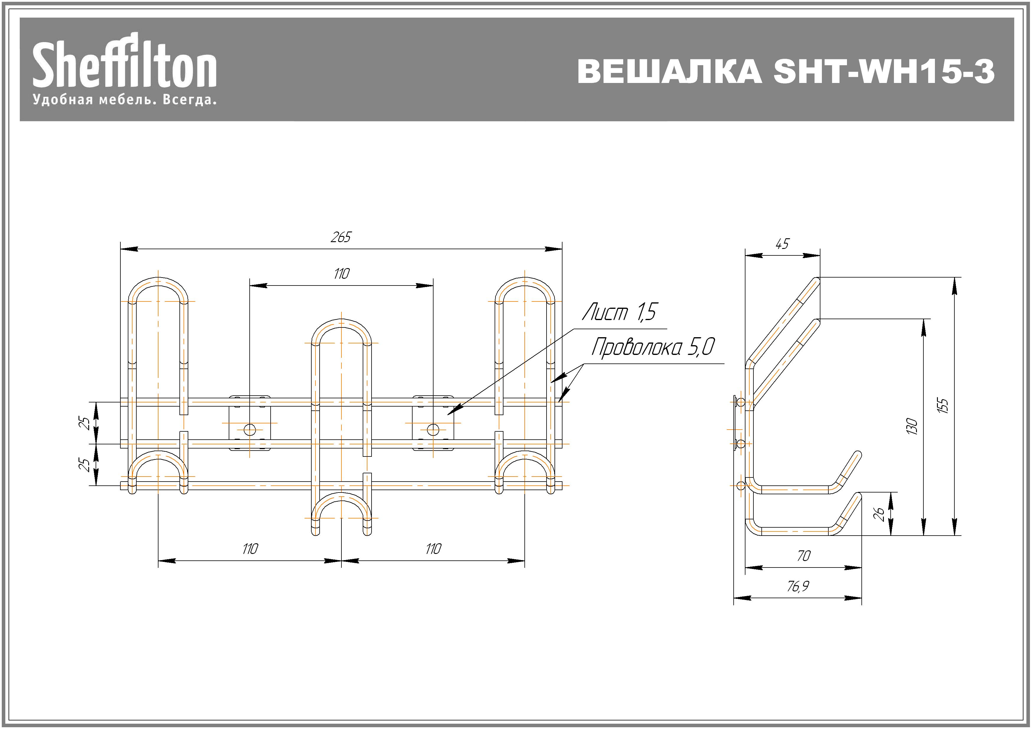 - Вешалка выполнена из стального прутка диаметром 5 мм.;
