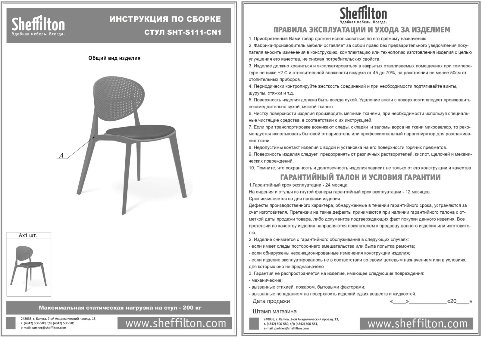 Каждый стул проходит испытания на устойчивость, прочность и безопасность. Выдерживает продолжительные нагрузки - максимальная статическая нагрузка 200 кг.