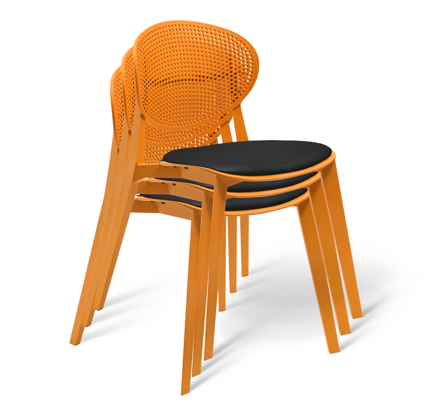 максимально по 5 штук, что значительно облегчает хранение и использование. С обратной стороны каждого стула, предусмотрена каучуковая защита, которая обеспечивает бережное штабелирование.