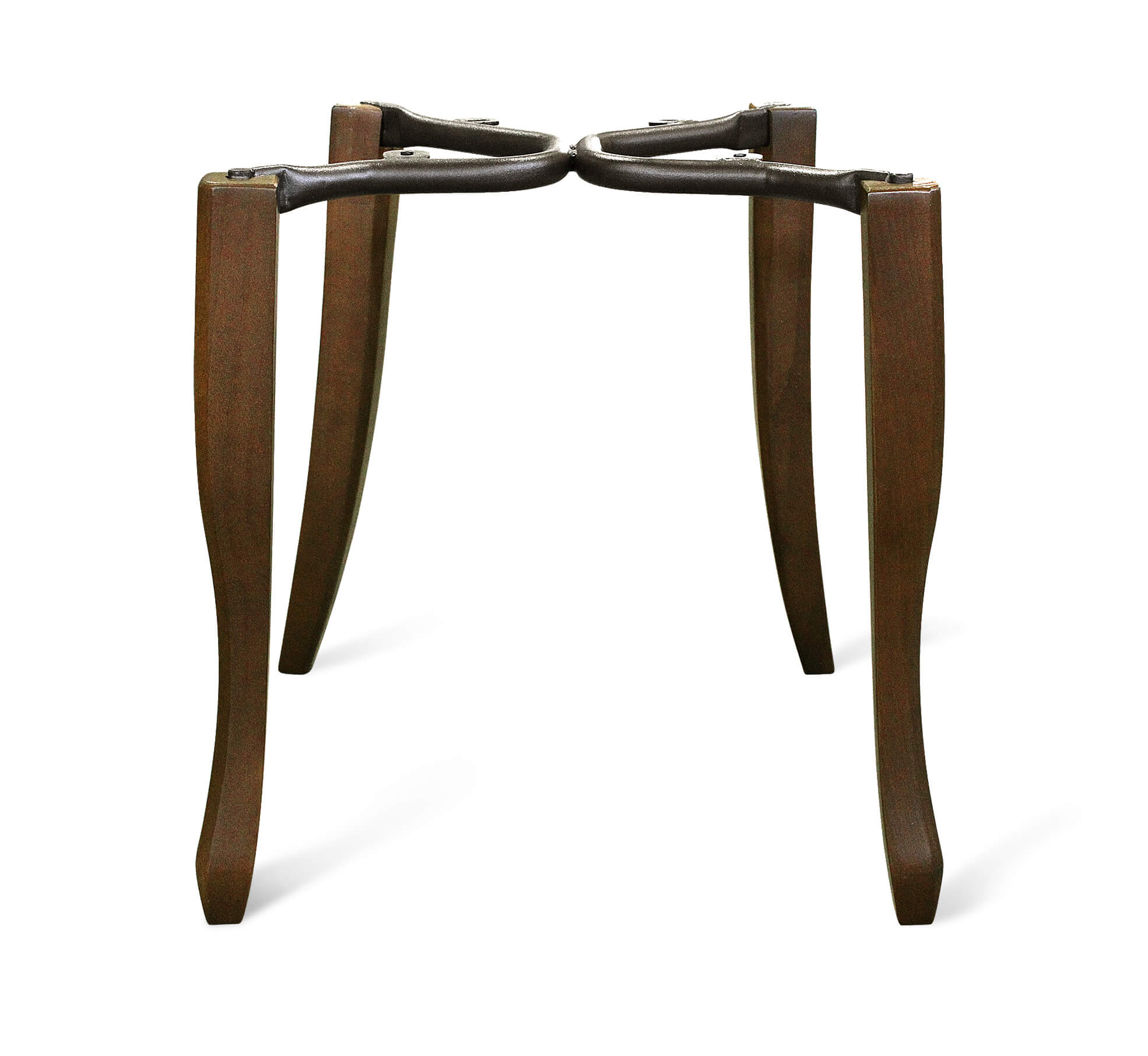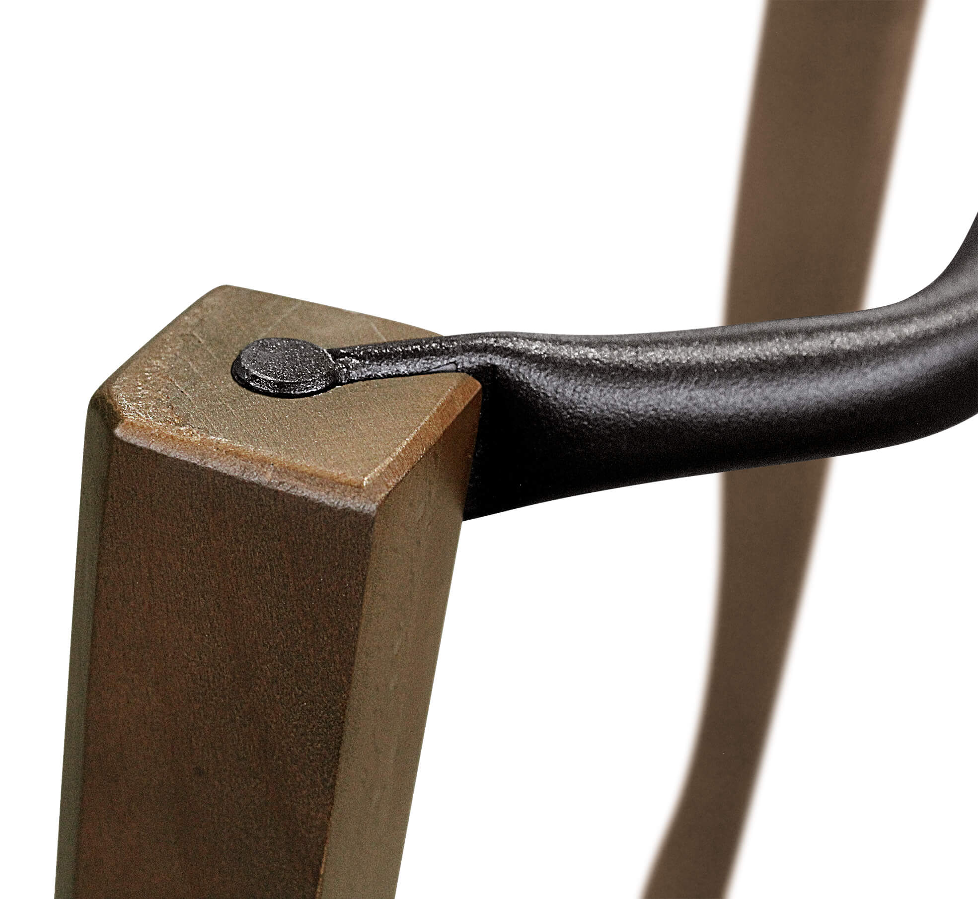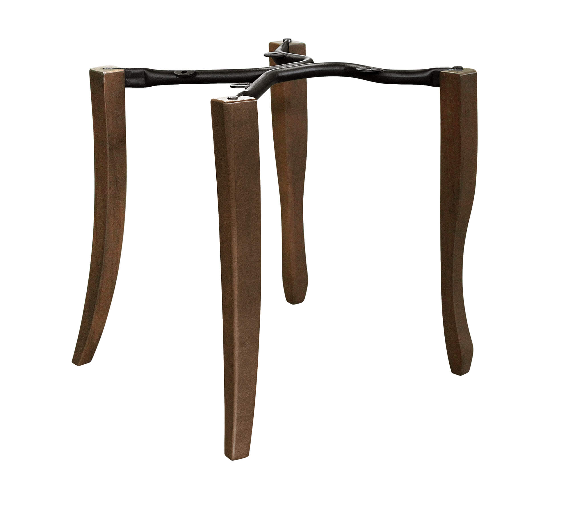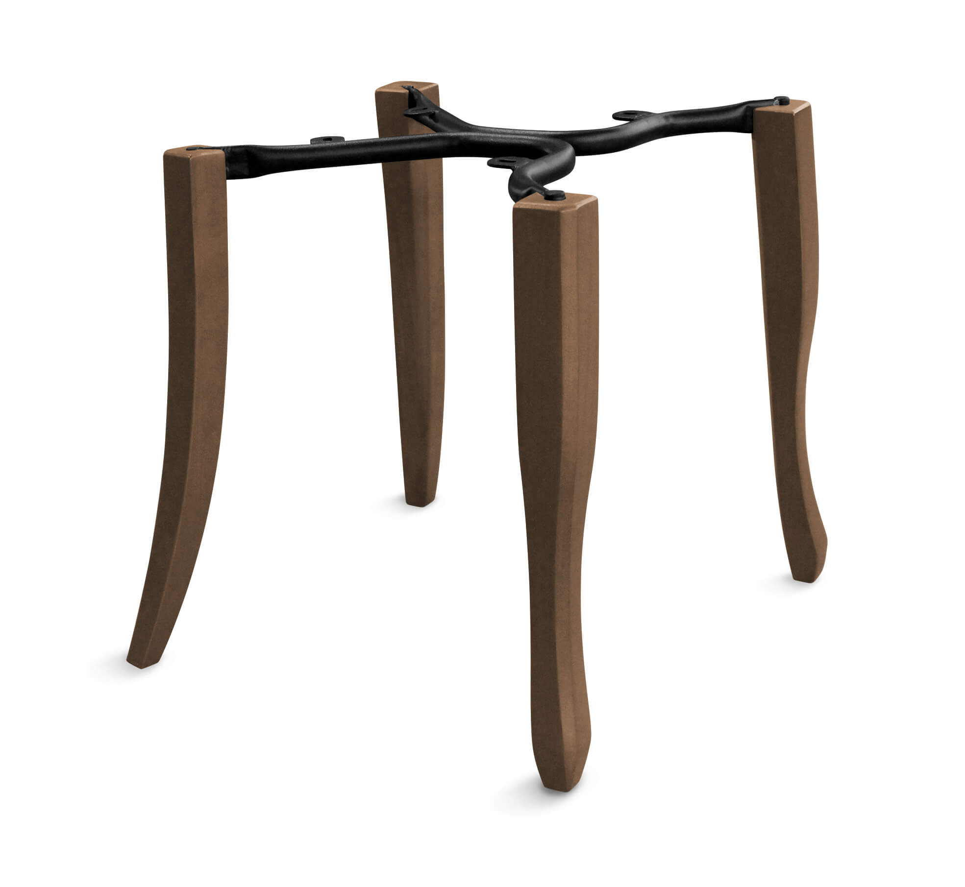 Каркас выполнен из массива древесины твердых пород с последующим тонированием и покрытием лаком. Верхняя часть крестовины выполнена из металлической трубы диаметром 18 мм и окрашена порошковой краской, устойчивой к механическому воздействию.