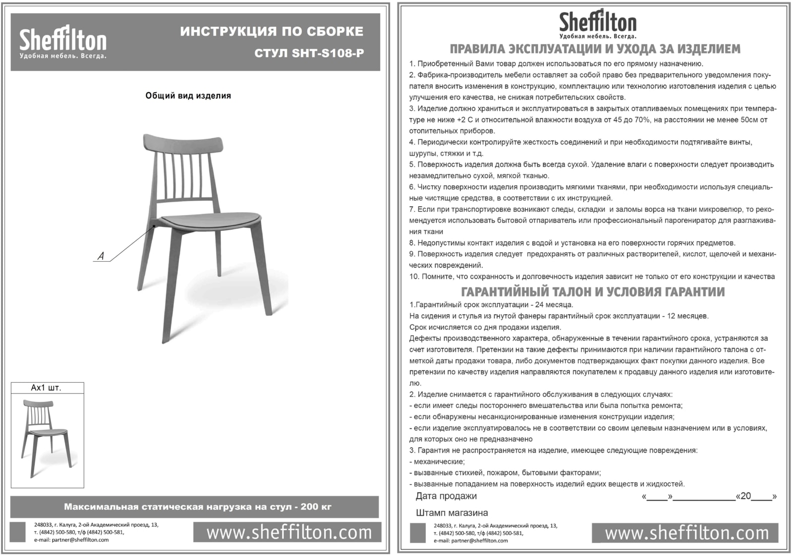 Каждый стул проходит испытания на устойчивость, прочность и безопасность. Выдерживает продолжительные нагрузки - максимальная статическая нагрузка 200 кг.