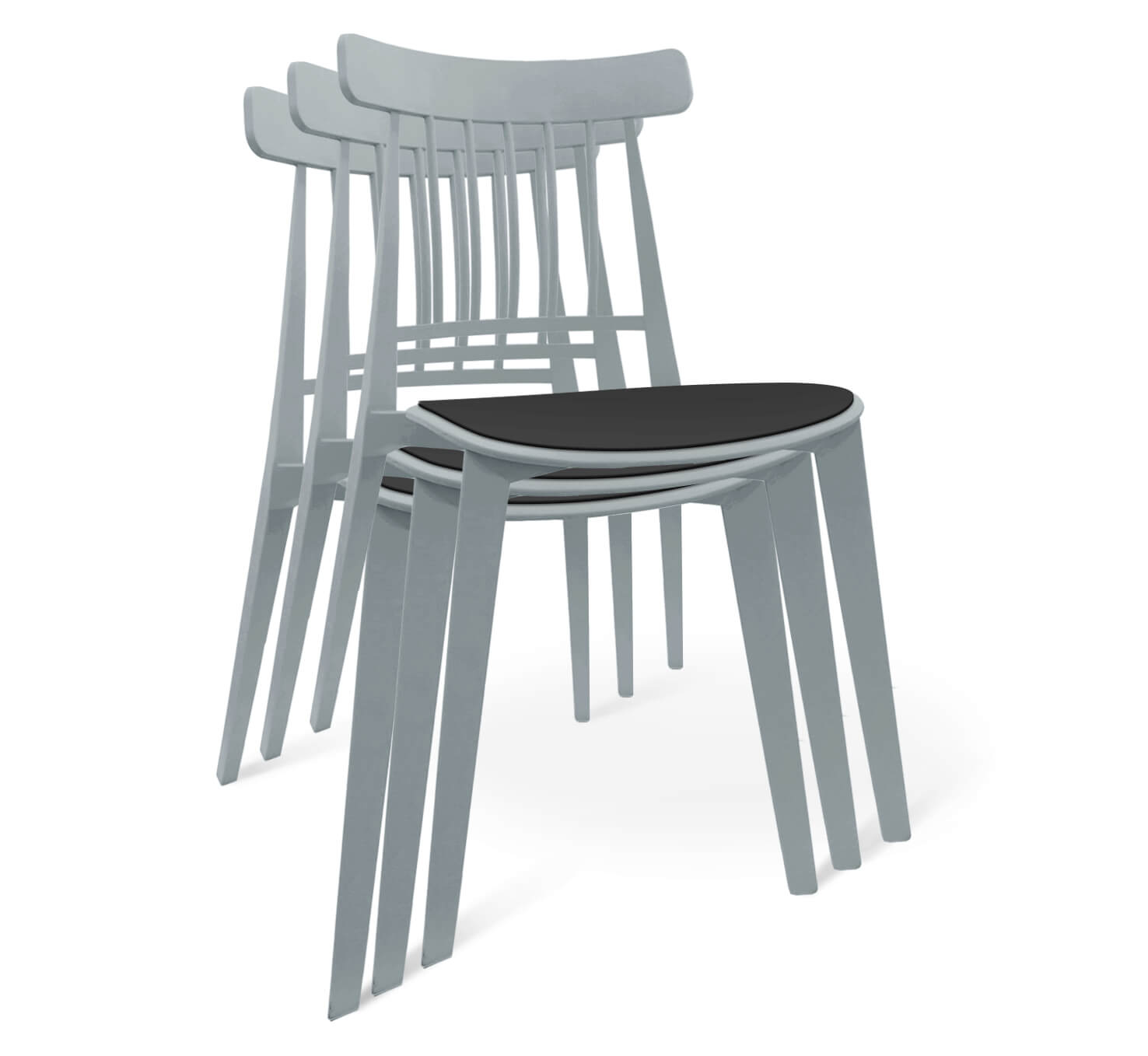 максимально по 5 штук, что значительно облегчает хранение и использование. С обратной стороны каждого стула, предусмотрена каучуковая защита, которая обеспечивает бережное штабелирование.