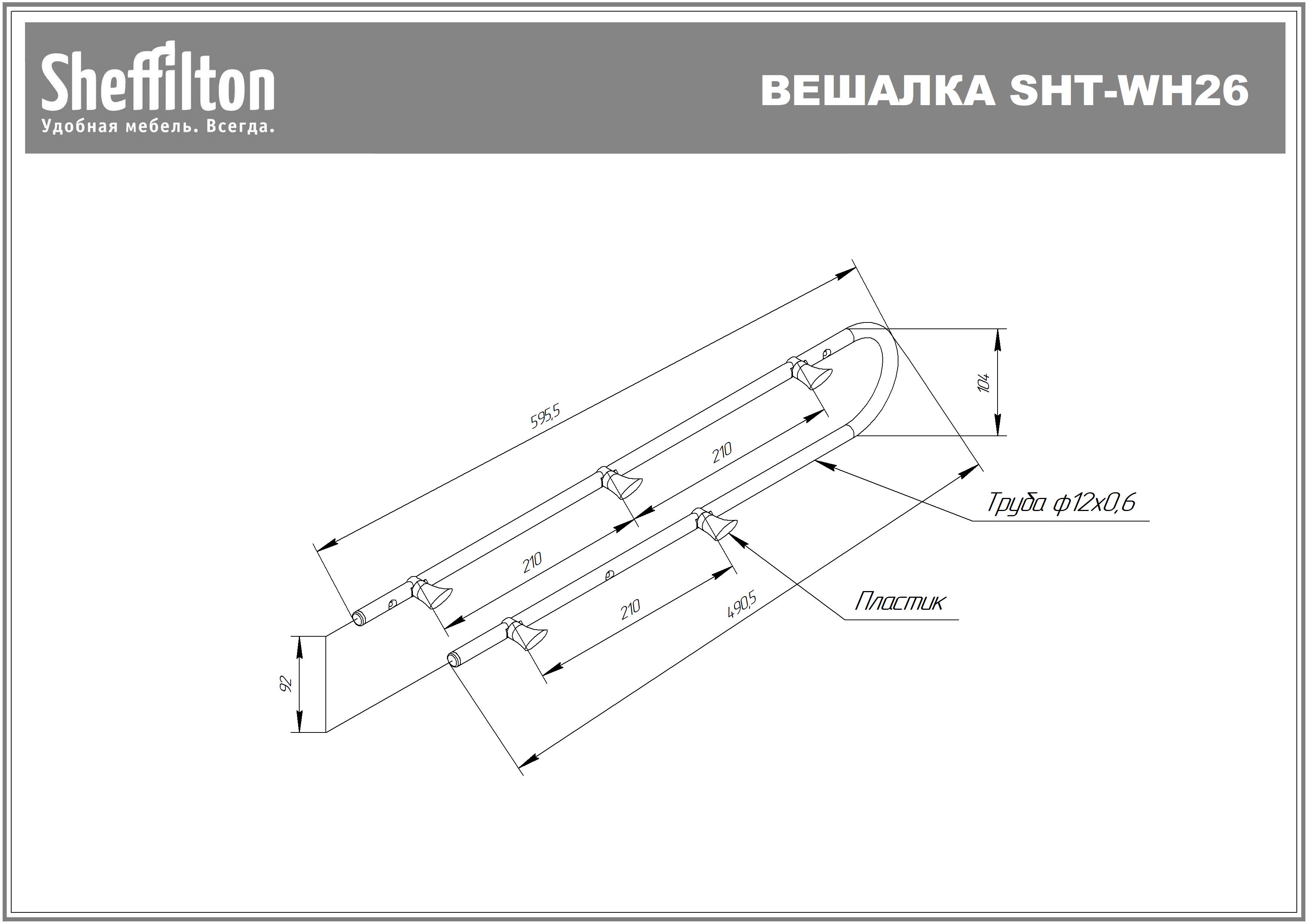 Вешалка выполнена из металлической трубы (диаметр 12мм) и 5-х надежных пластиковых крючков. Металлические детали окрашены порошковой краской, устойчивой к механическому воздействию. Максимальная статическая нагрузка на крючок 5 кг.