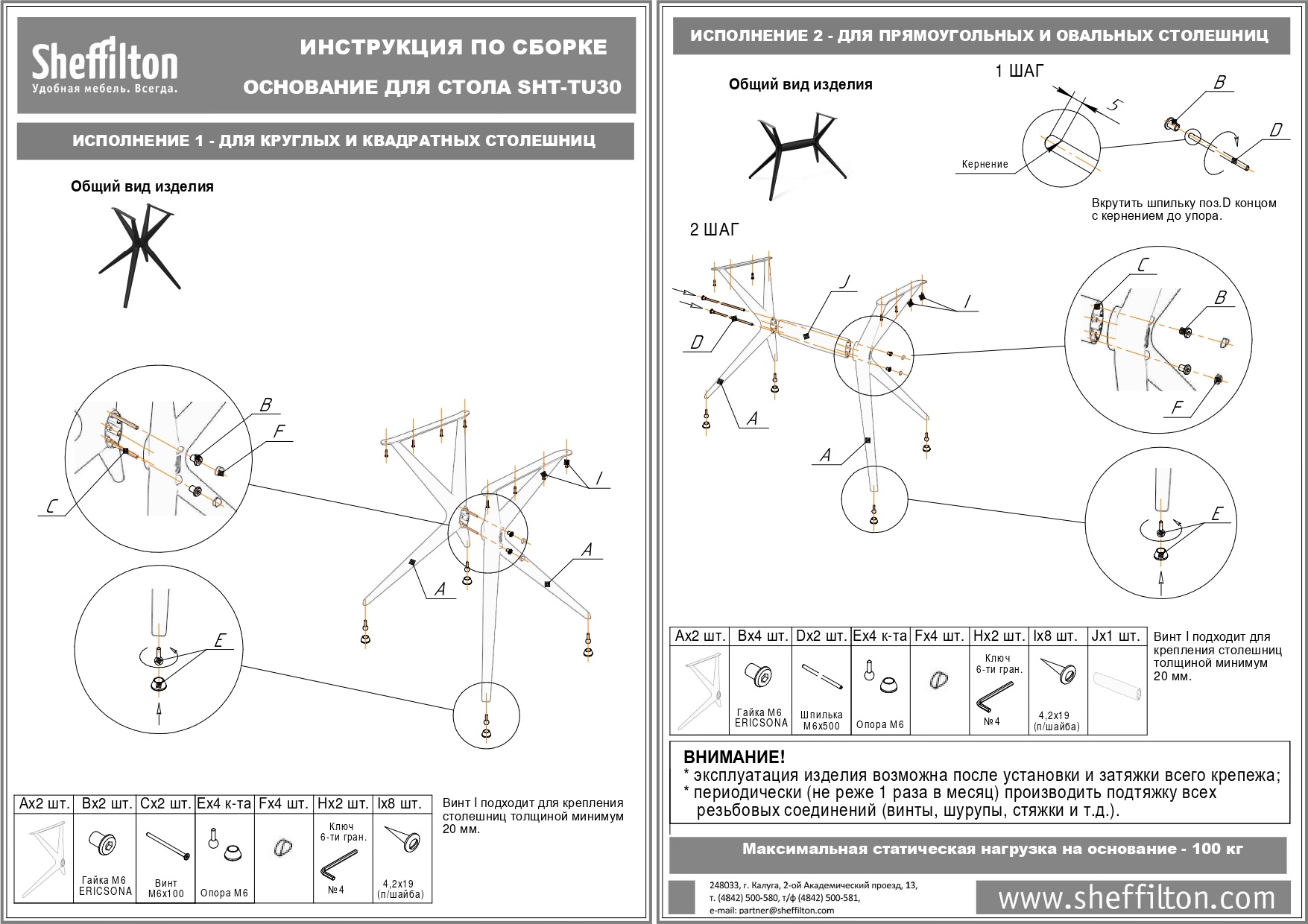 Специальная дополнительная вставка позволяет увеличить базу подстолья и использовать его для столешниц больших размеров (800*1200). При желании можно убрать вставку и использовать основание для квадратных или круглых столешниц.