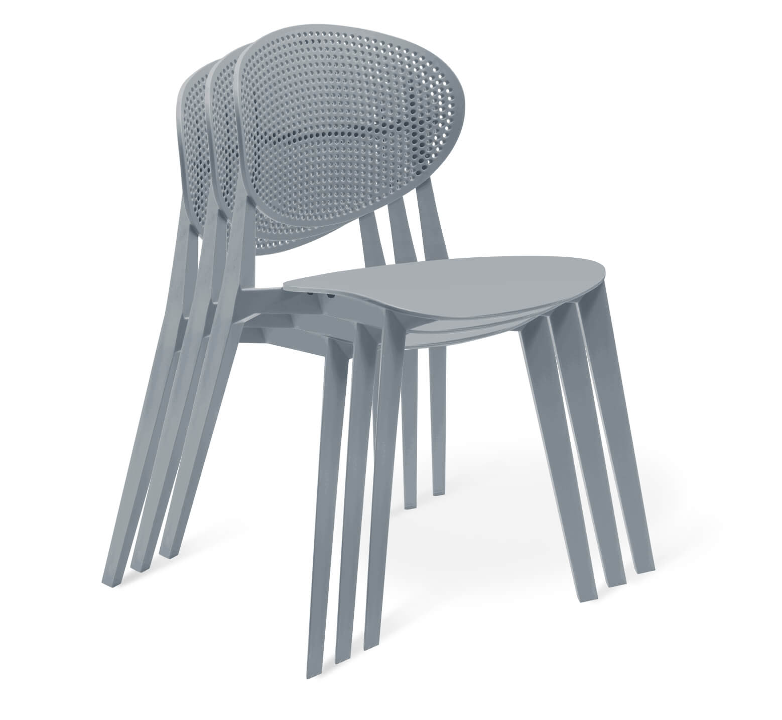 максимально по 5 штук, что значительно облегчает хранение и использование. С обратной стороны каждого стула, предусмотрена каучуковая защита, которая обеспечивает бережное штабелирование.