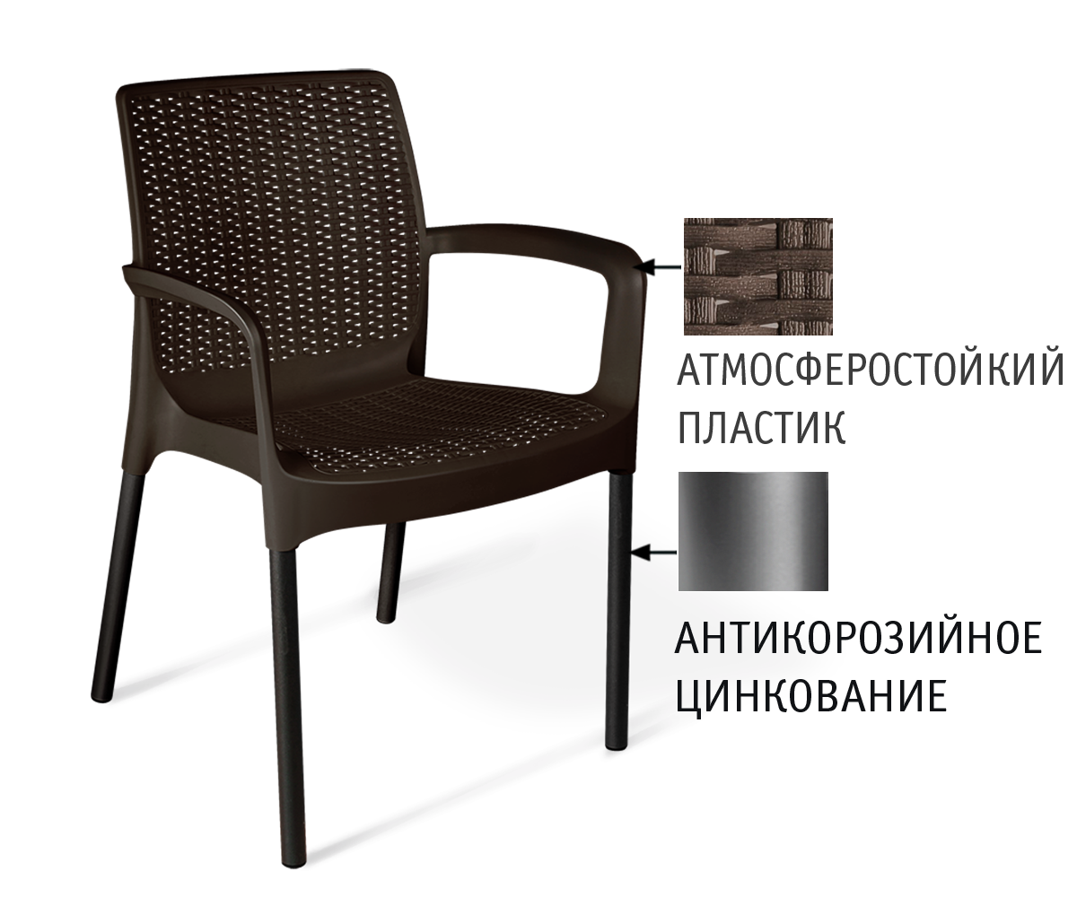 - Стул выполнен из атмосферостойкого пластика и отлично переносит воздействие любых погодных условий;