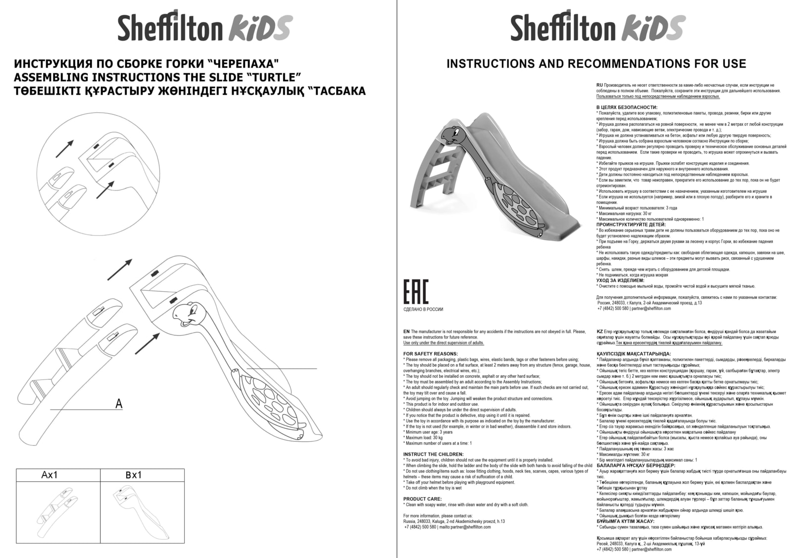 Максимальная статическая нагрузка на горку - 30 кг.