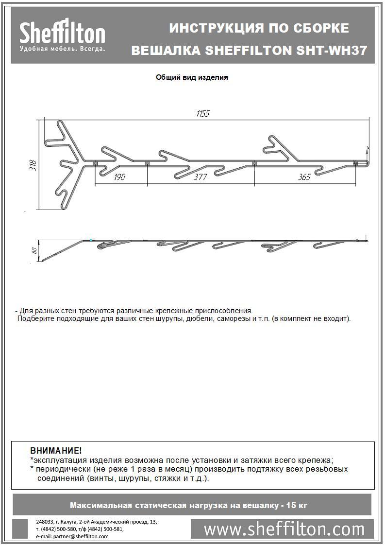 Вешалка выполнена из проволоки 6 мм. Максимальная статическая нагрузка на вешалку 15 кг.