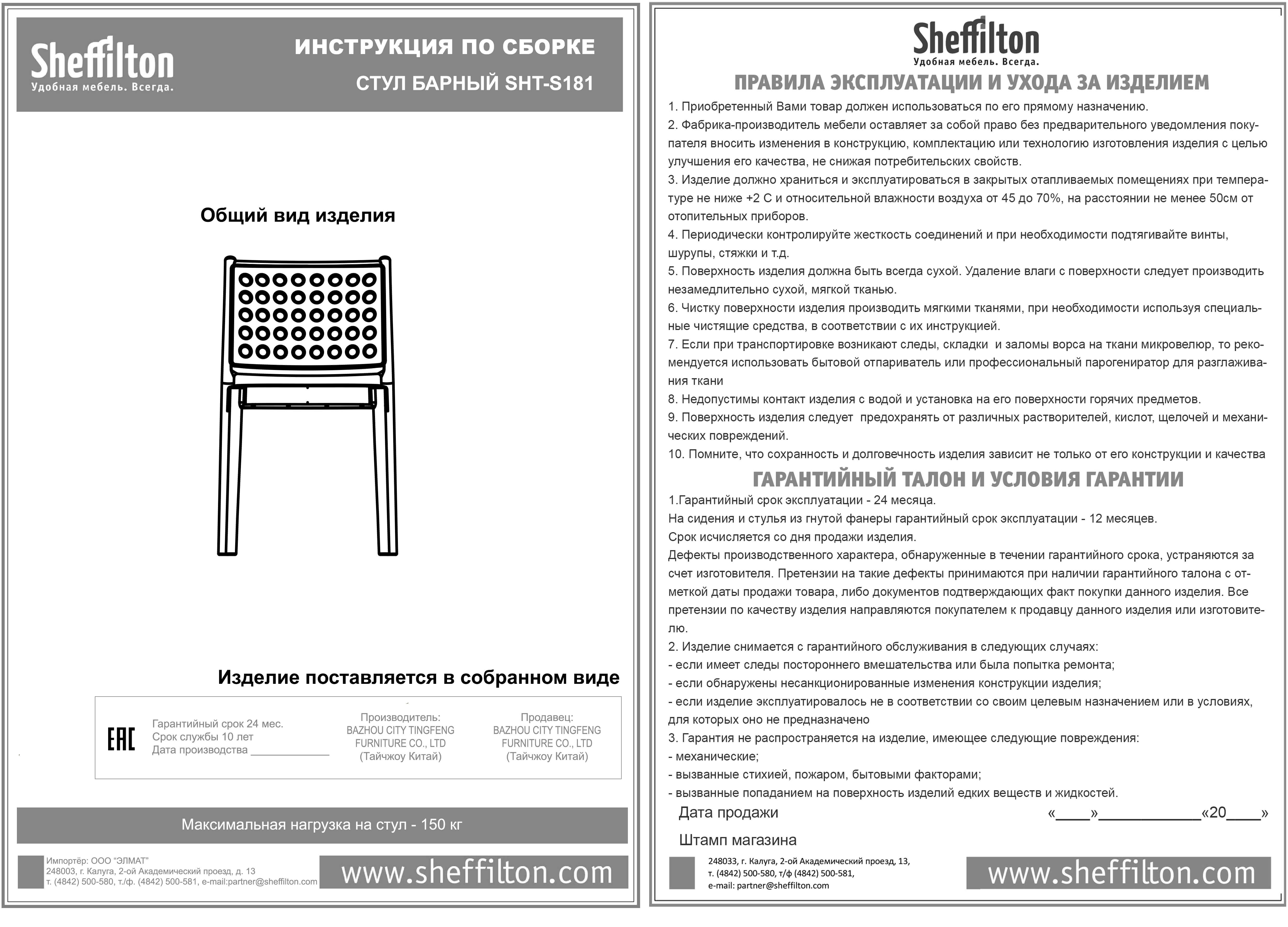 Также в коллекции данного дизайна имеется барный стул SHT-S181-1.