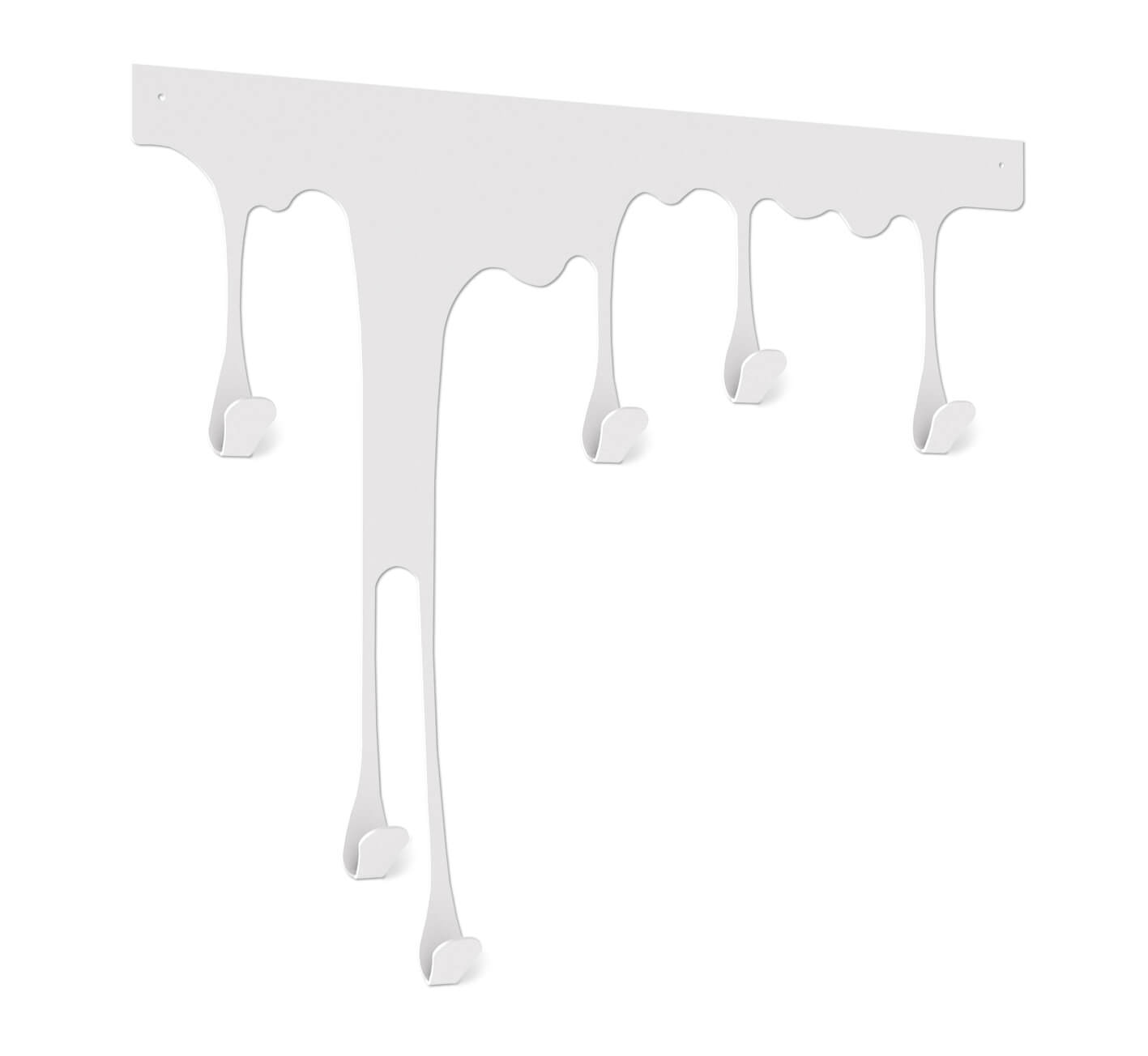 Форма стекающих капель краски задает особую динамику и художественность в интерьер. Плавно стекающие и утончающиеся капли смотрятся привлекательно и легко. Каждая капля является крючком. Вешалка может стать интересным акцентом в оформлении дизайна помещения.