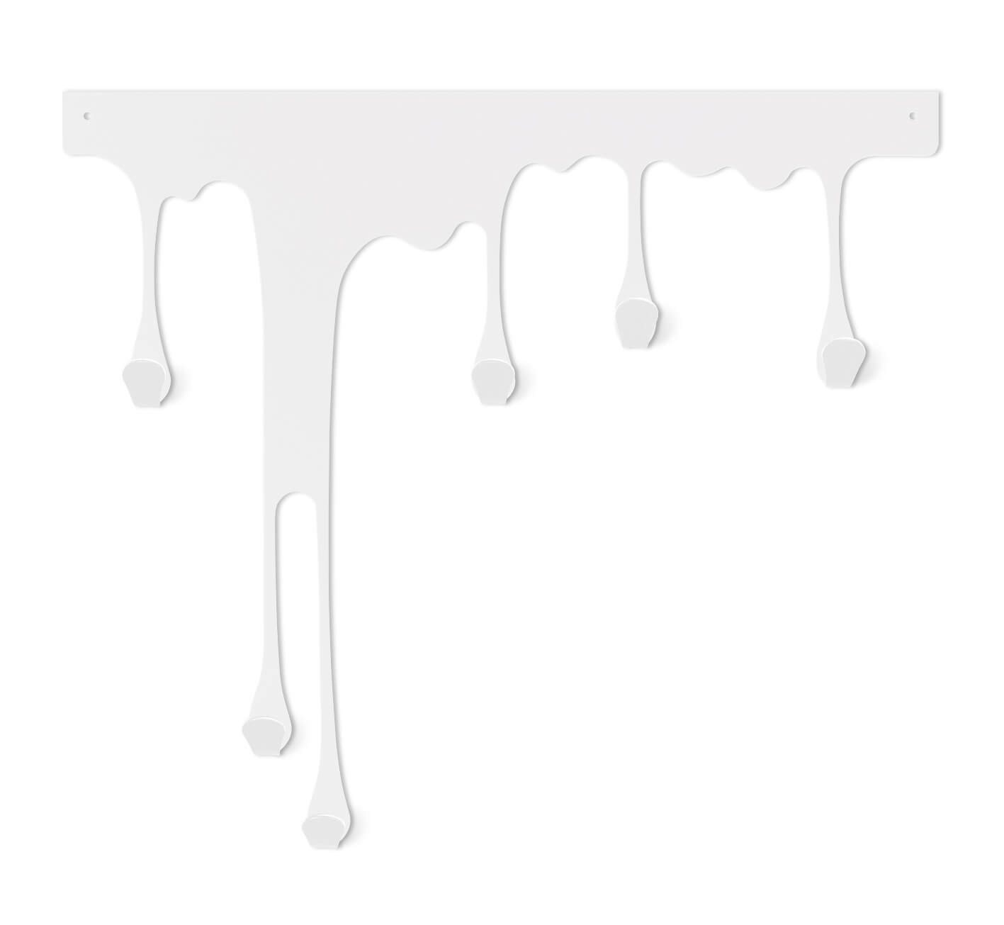 Форма стекающих капель краски задает особую динамику и художественность в интерьер. Плавно стекающие и утончающиеся капли смотрятся привлекательно и легко. Каждая капля является крючком. Вешалка может стать интересным акцентом в оформлении дизайна помещения.
