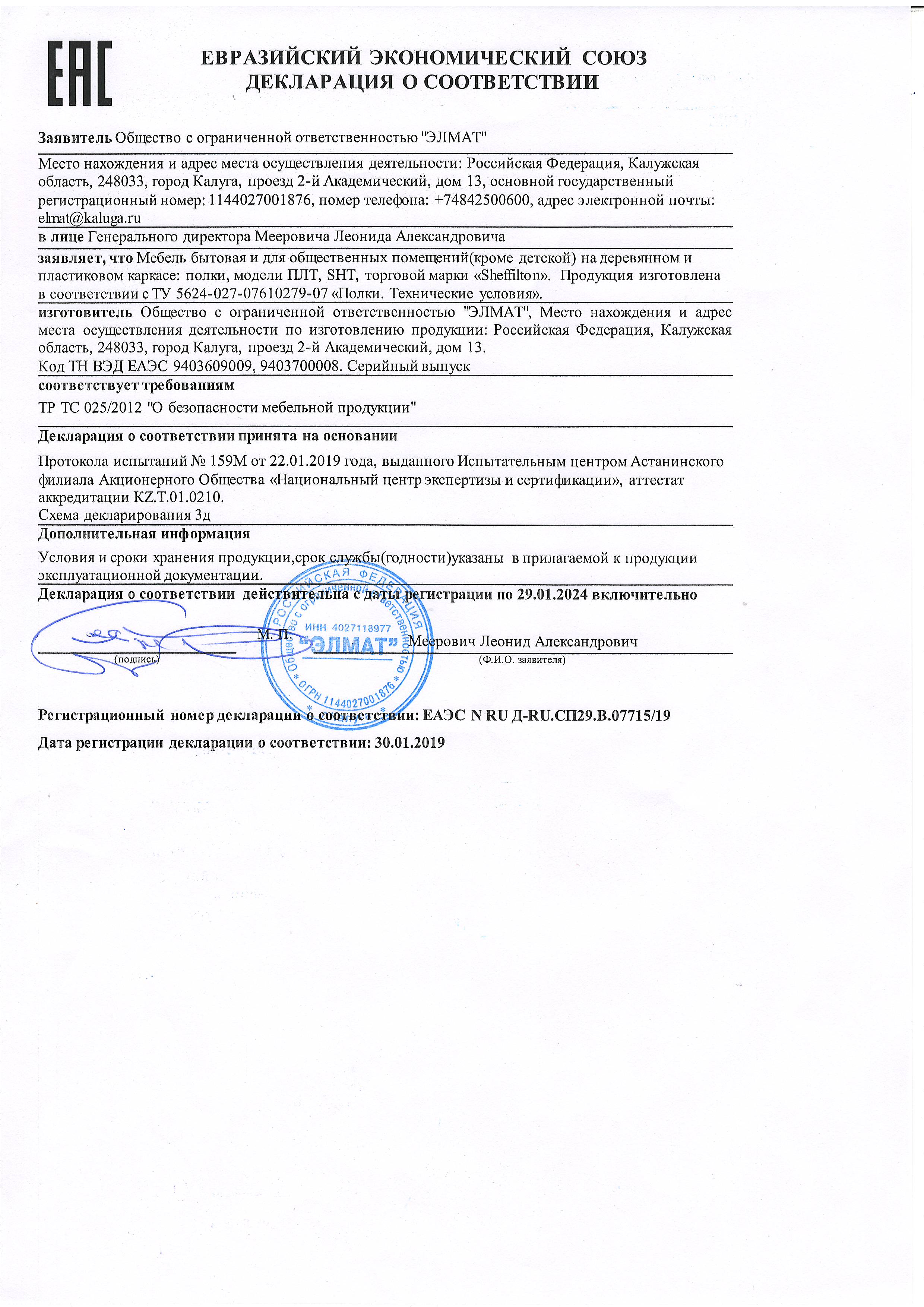 - Максимальная распределенная нагрузка на полку 15 кг;