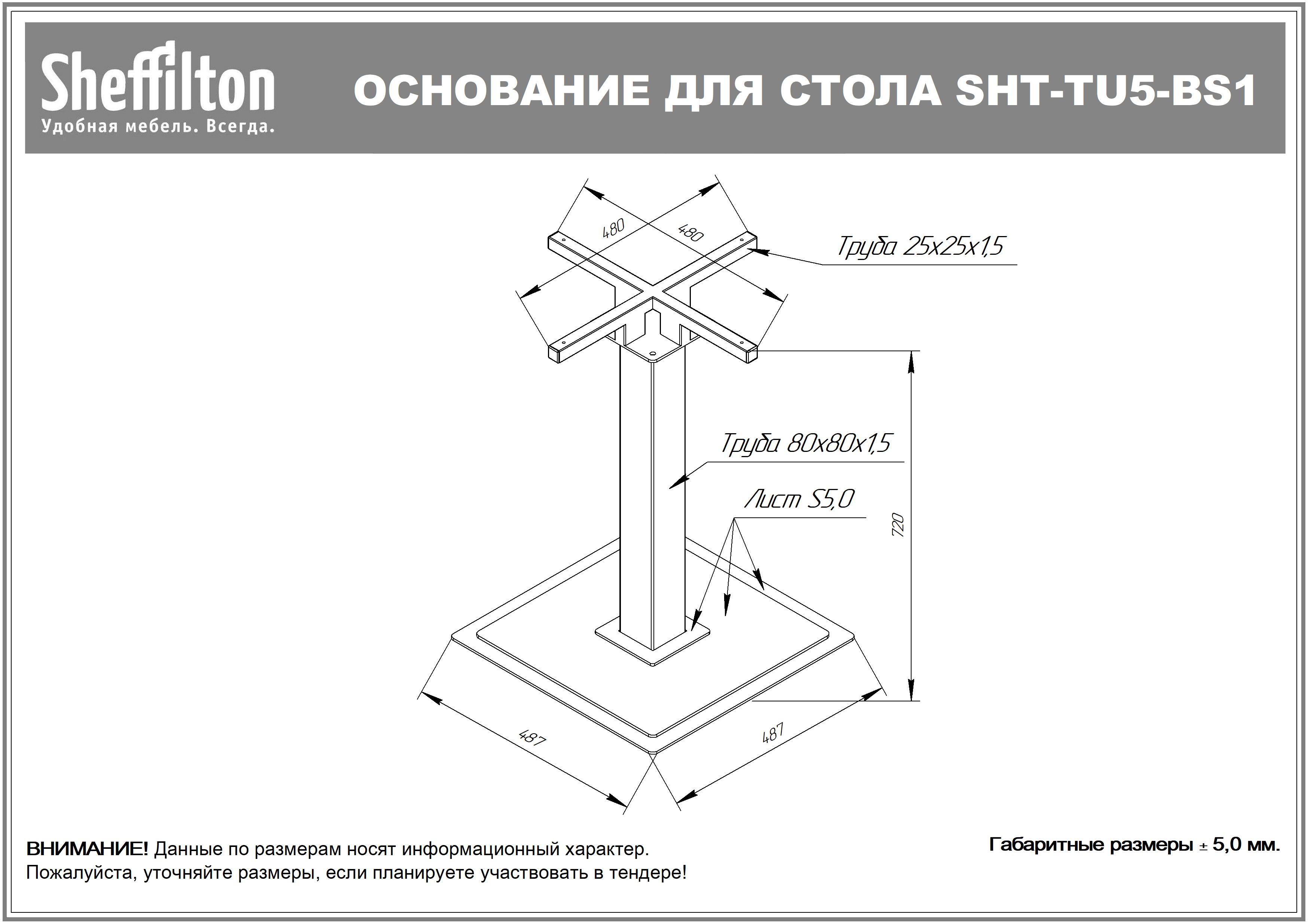 - Комплект состоит из стойки TU5 и плоского основания BS1;