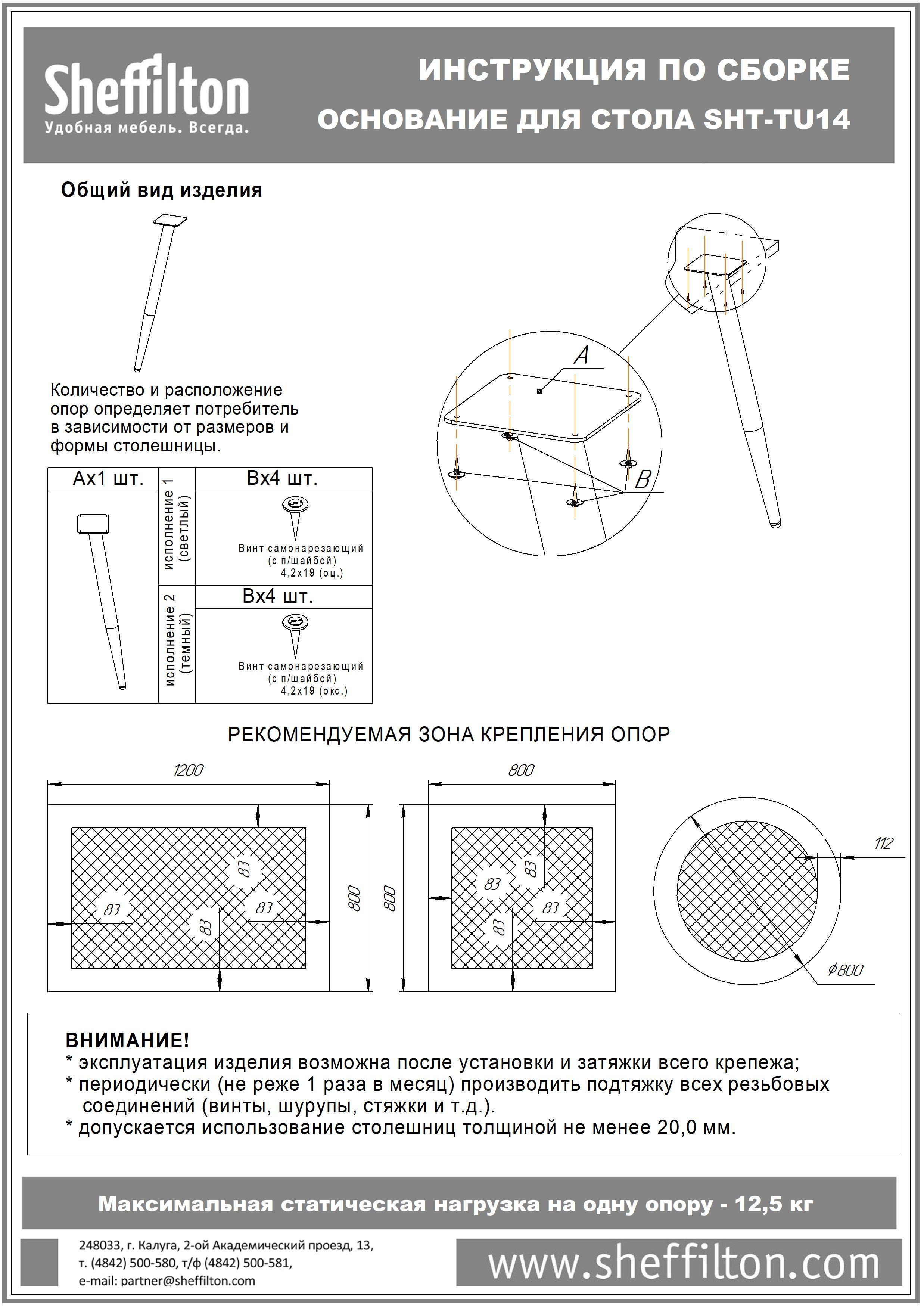 Рекомендуем использовать для круглых столешниц от 3-х оснований, для квадратных, овальных и прямоугольных - от 4-х.