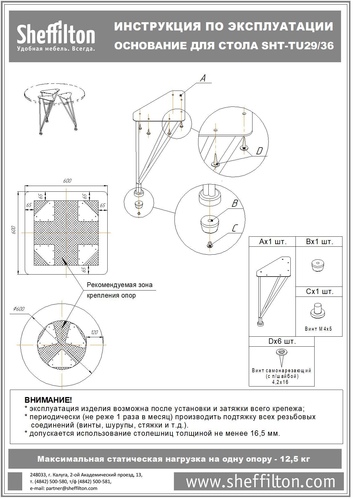 Рекомендуемые размеры отступов для установки опор под столешницу 80х80 - 102 мм. от края. Под столешницу 120х80 - 102х102 мм. от края. Более подробную информацию смотрите в схеме сборки изделия.