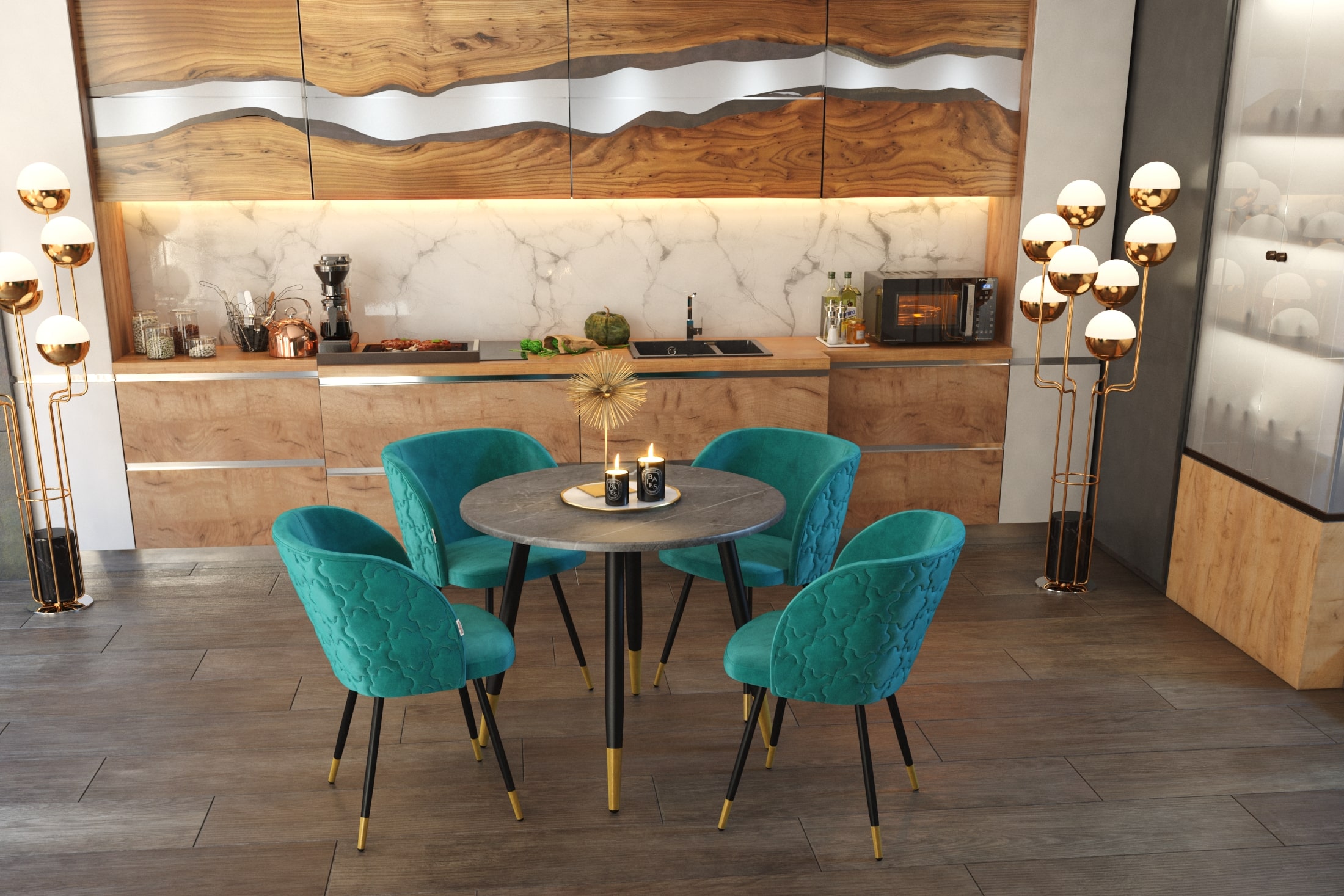 СТИЛЬНЫЙ ДИЗАЙН. Оригинальную нотку придает золотое напыление в нижней части опоры. Четкое разделение черного и золотого прекрасно гармонируют со столешницами Sheffilton и каркасом стула в аналогичном стиле SHT-S95-1 черный муар/золото.