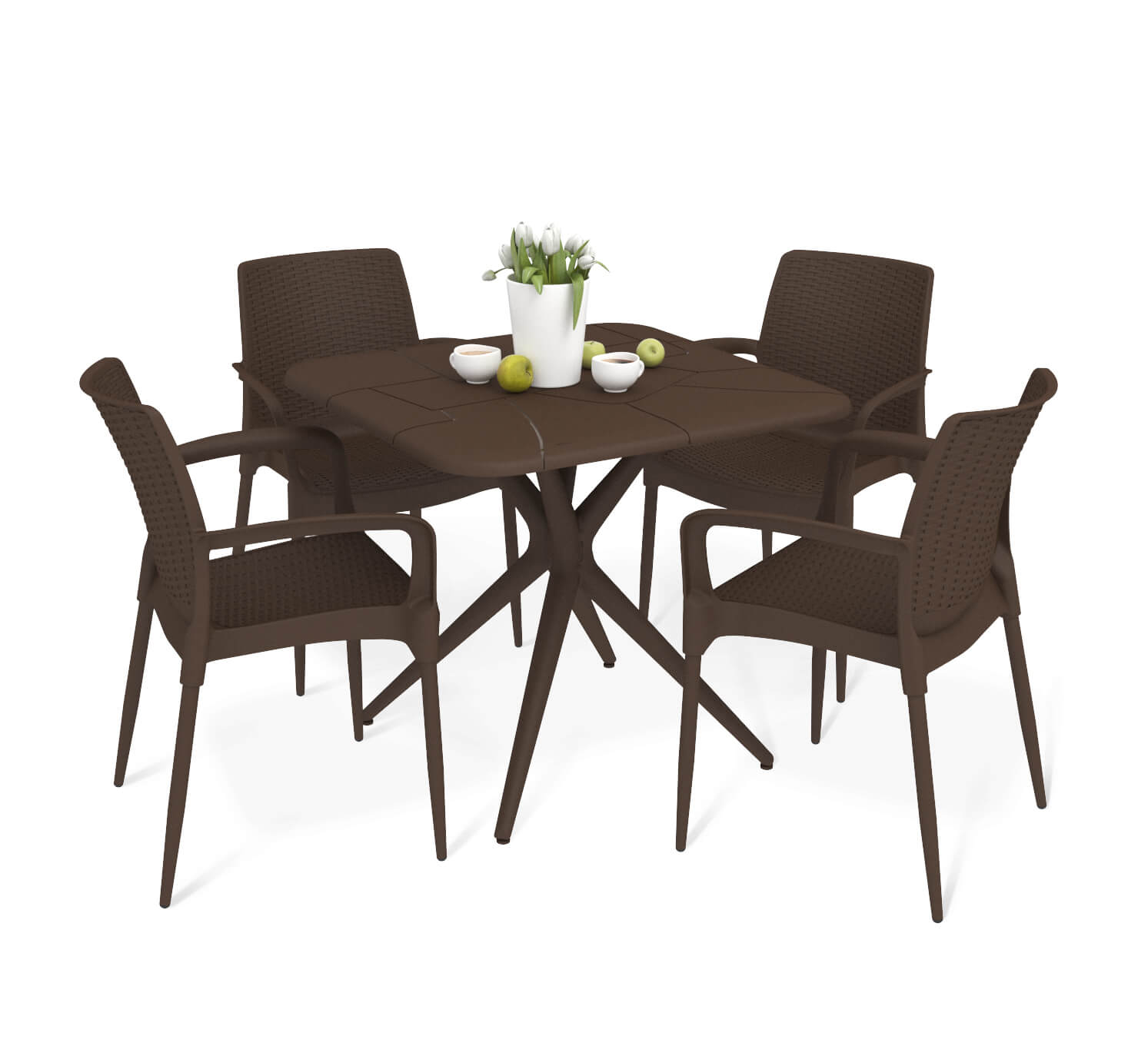 Благодаря повышенным АТМОСФЕРОСТОЙКИМ СВОЙСТВАМ, столешница, подстолье сиденье хорошо переносят воздействие погодных условий. Не деформируются и имеют более устойчивое сопротивление к изменению цвета.