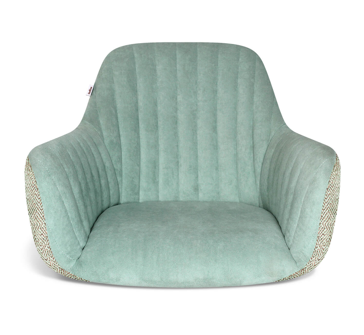 СТИЛЬНЫЙ ДИЗАЙН Благодаря миксу двух тканей микровелюру и твиду, готовое кресло станет изюминкой интерьера! Оригинальность твида заключается в текстуре, состоящей из 5 оттенков нити. Это залог сложного цвета, но в то же время легкого восприятия. На контрасте два цвета нежный мятный и пикантный оранжевый. Хромированные детали каркаса в сочетании с яркими контрастными цветами сиденья делают изделие настоящим образцом современного стиля.