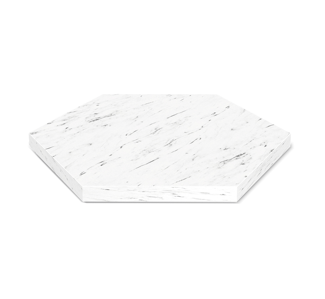 Столешница шестигранник из ЛДСП смотрится аккуратно и привлекательно. Цвет каждой столешницы имитирует текстуру натурального камня.