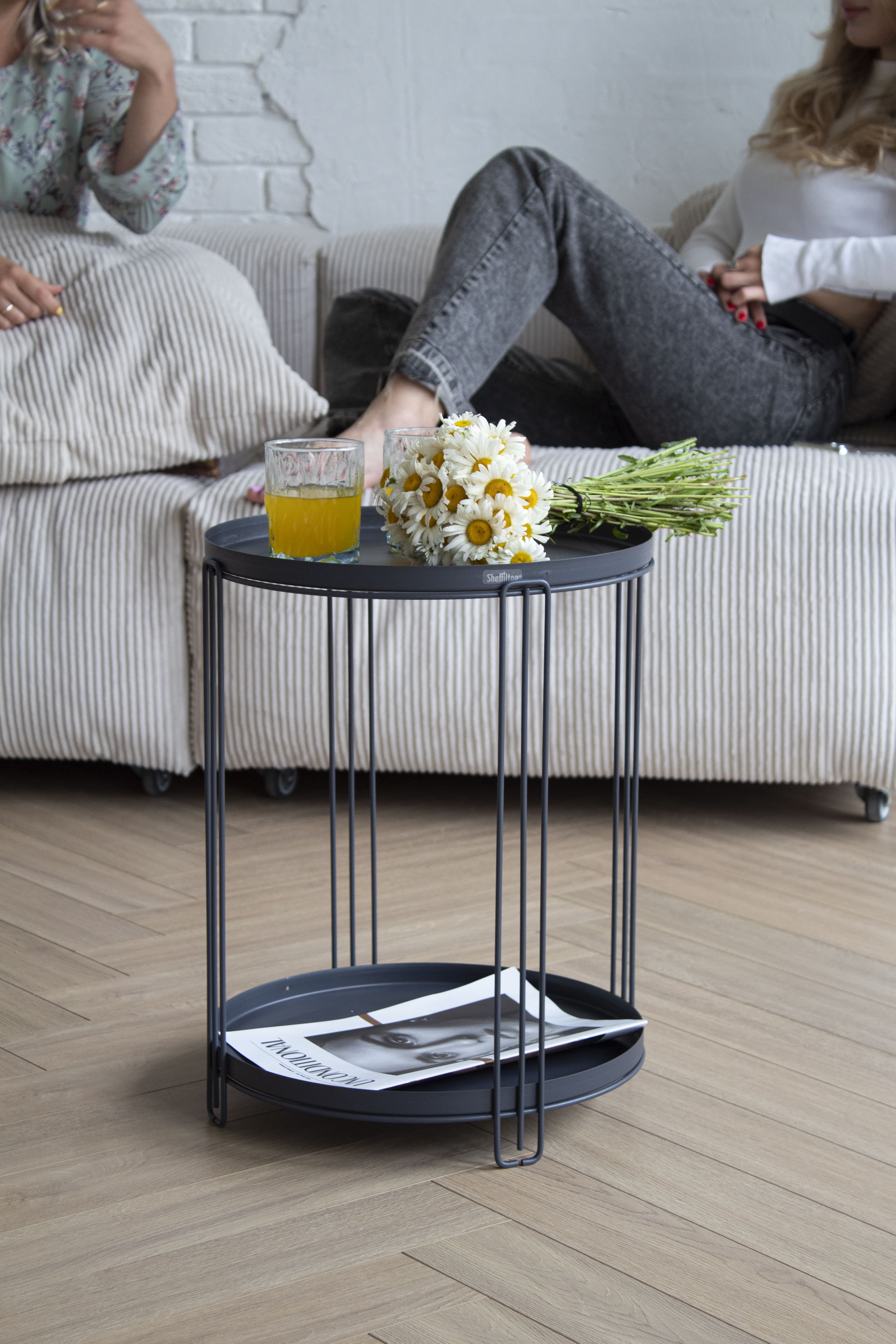 Столик легко поднять за опоры и перенести в любое место дома или офиса. Верхнюю столешницу можно использовать в качестве подноса, что очень удобно для перемещения вкусняшек с кухни к телевизору или ноутбуку.