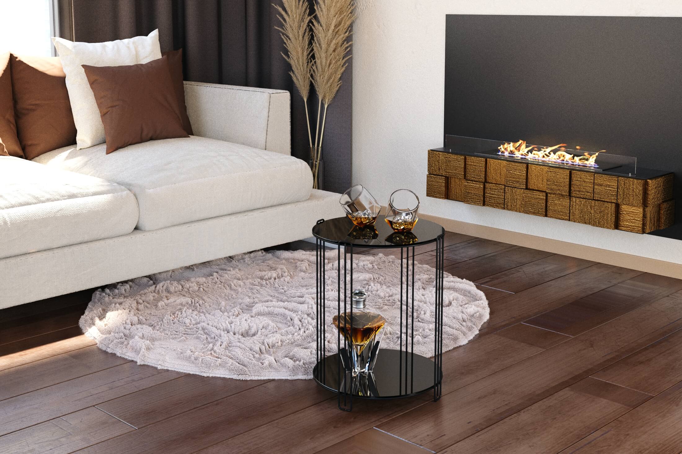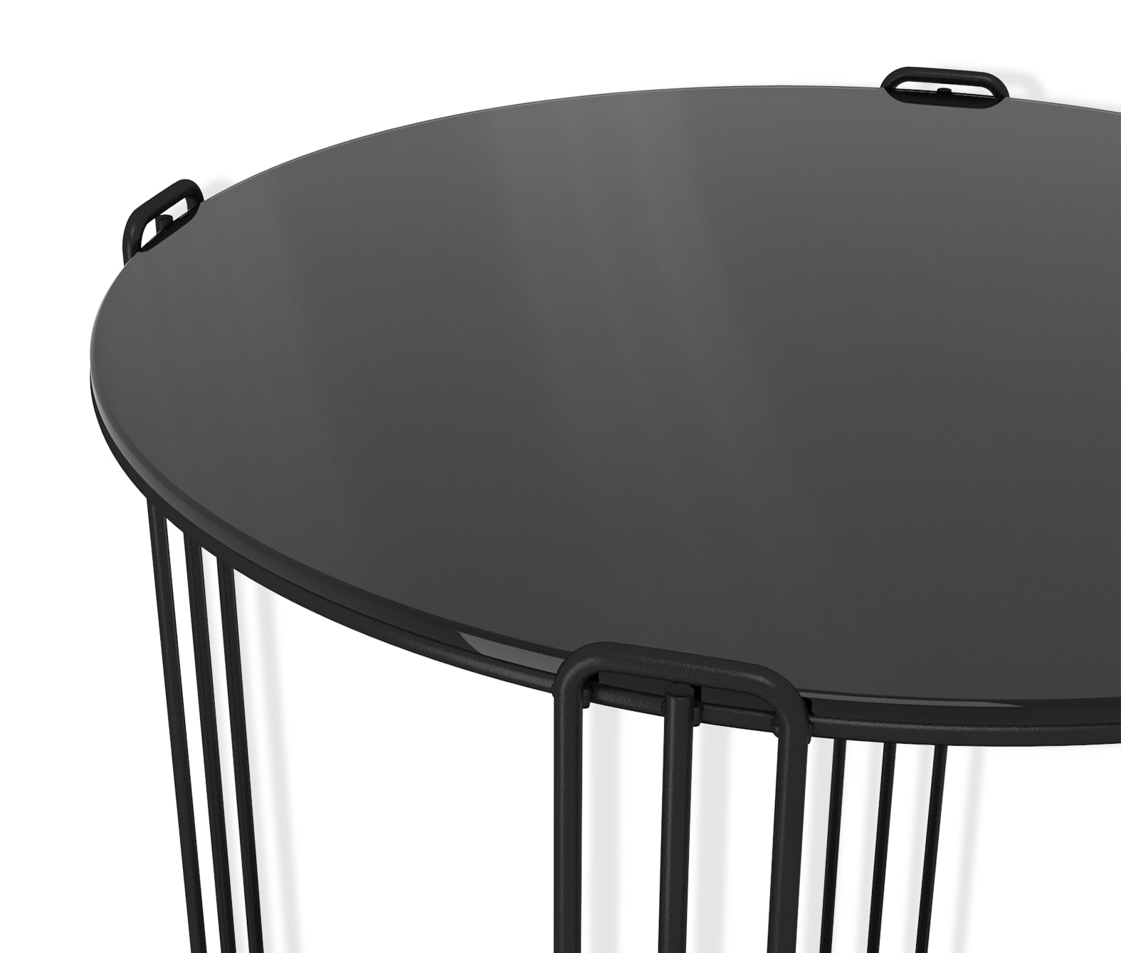Столешницы из стекла смотрятся невесомо, благодаря толщине 5 мм. Продуманный дизайн ножек делает столик визуально легким и невесомым.