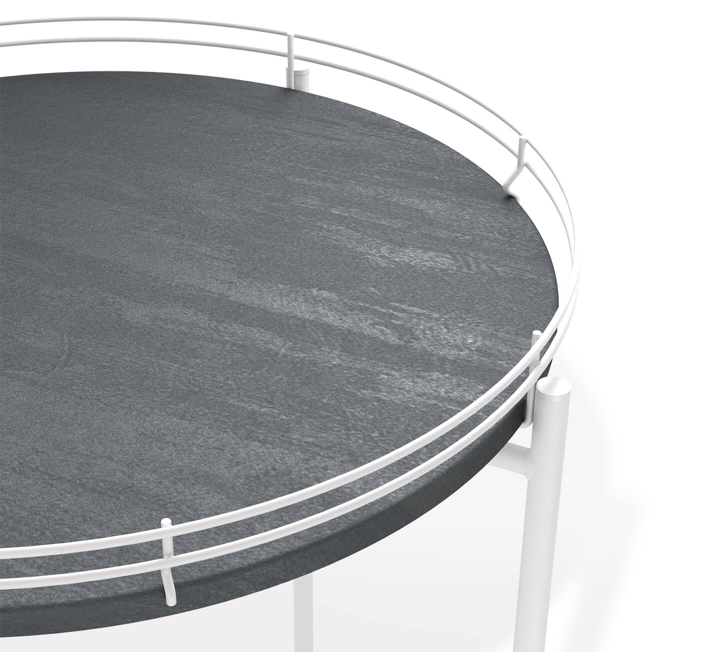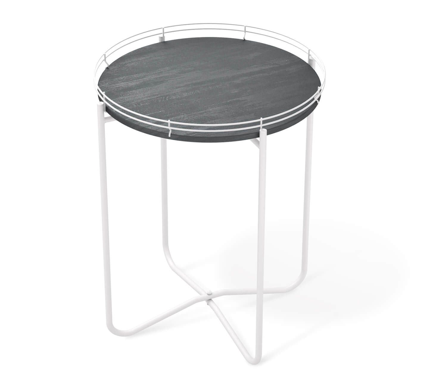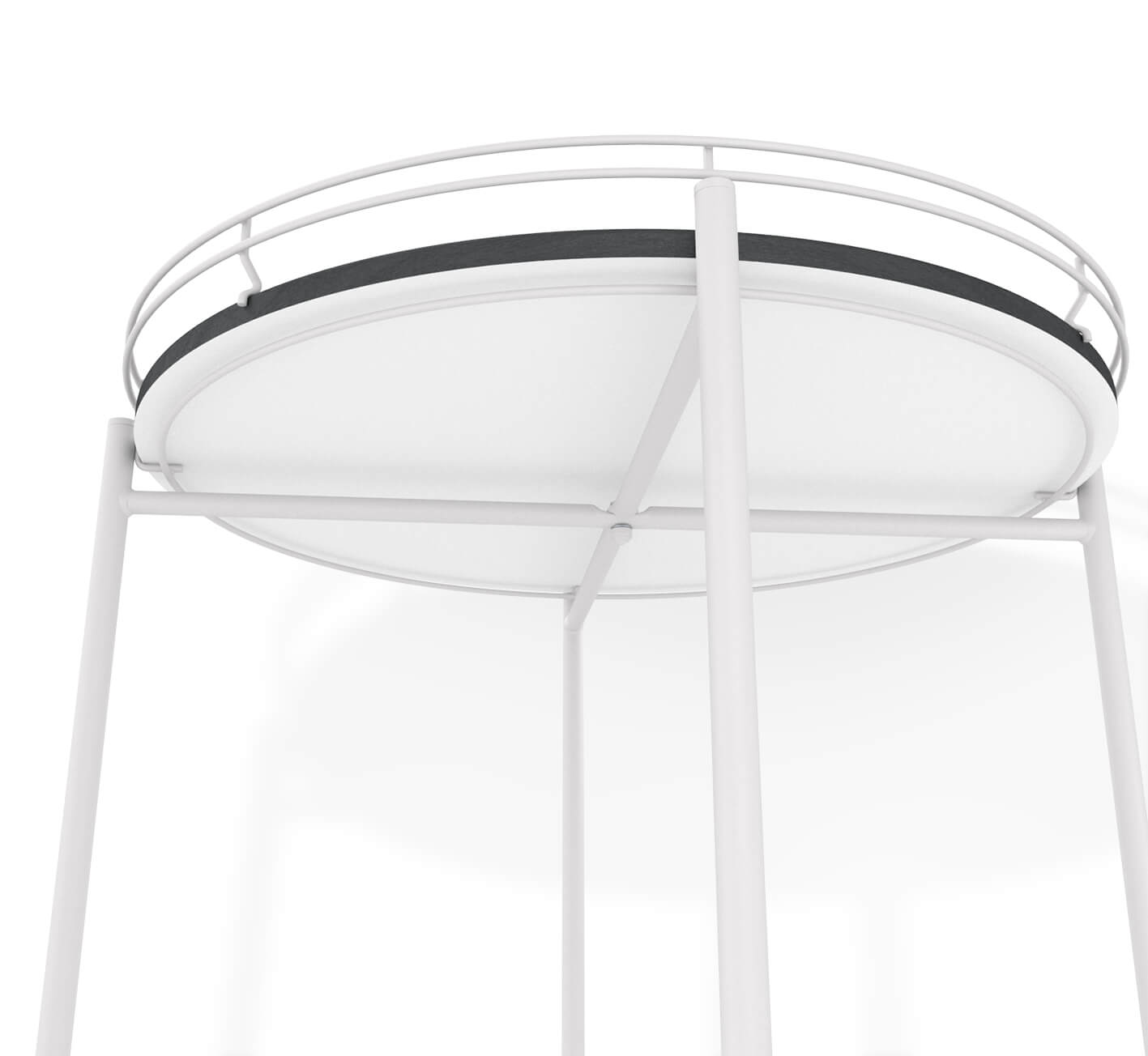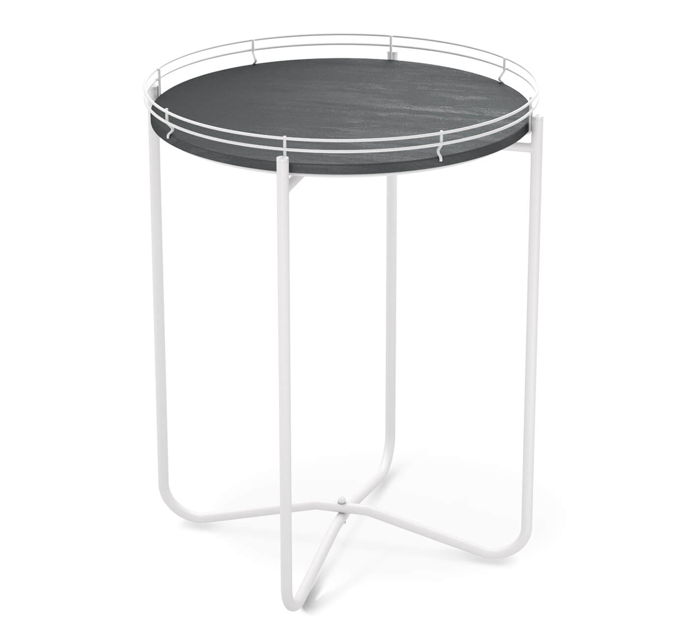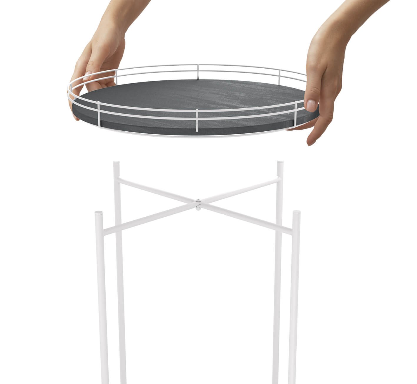 Столешница диаметром 41,8 см – съемная, её можно использовать в качестве подноса для перемещения вкусняшек из кухни к телевизору или ноутбуку. Бортик по краю столешницы позволяет бокалам и другим предметам не упасть во время использования. А черно-белый дизайн отлично подойдет под любой интерьер.