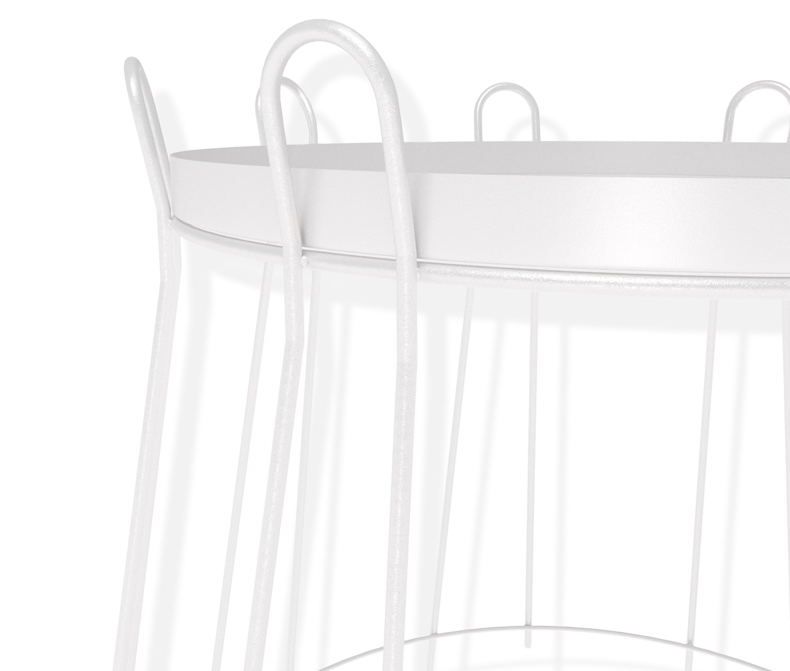 Металлический каркас и столешница окрашены порошковой краской, устойчивой к механическому воздействию. Каркас выполнен из прутка диаметром 4 и 5 мм.