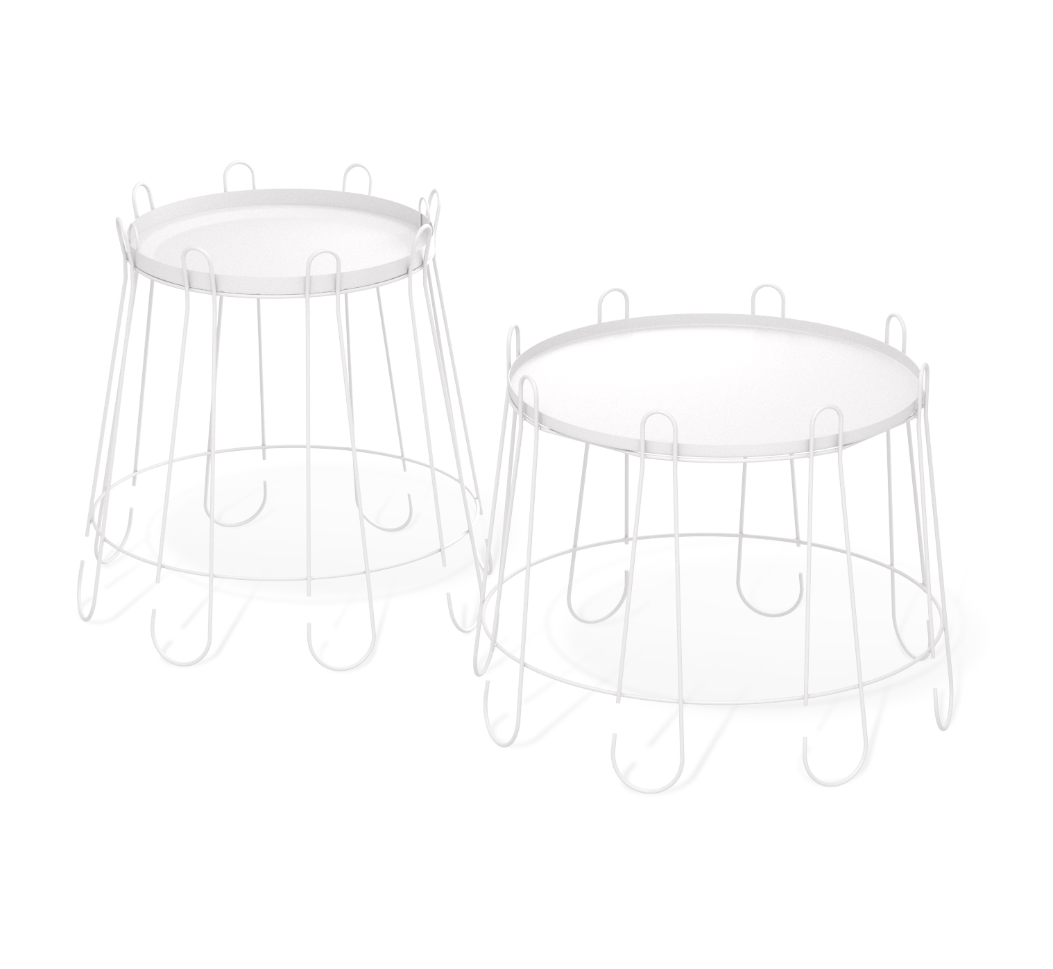 Столешница – съемная и её можно использовать в качестве подноса для перемещения угощения из кухни к телевизору или ноутбуку. Бортик по краю столешницы позволяет предметам не упасть во время использования. Диаметр столешниц 35 и 45 см.