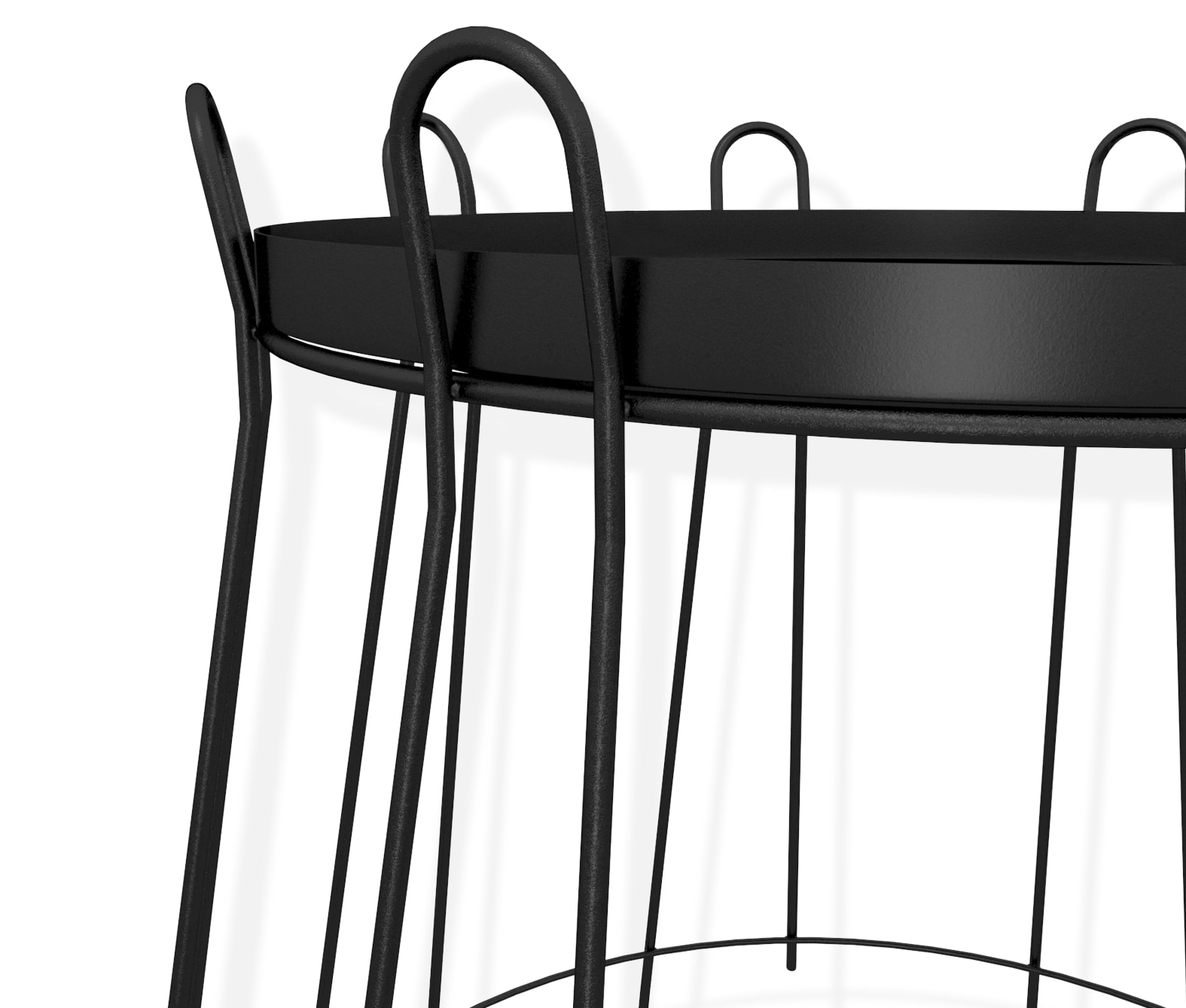 Металлический каркас и столешница окрашены порошковой краской, устойчивой к механическому воздействию. Каркас выполнен из прутка диаметром 4 и 5 мм.