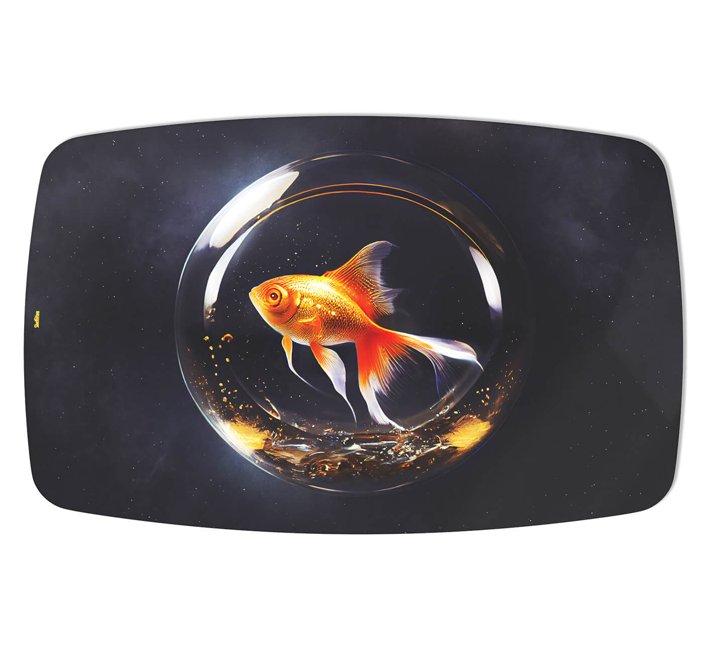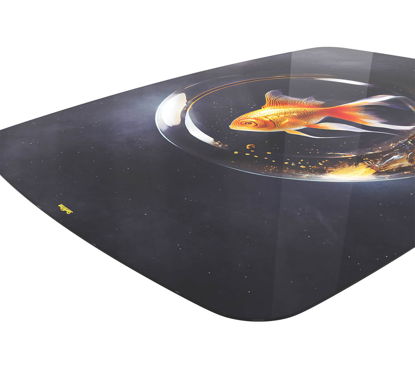 Столешница выполнена из закаленного стекла с ультрафиолетовой печатью. Одним из главных преимуществ закаленного стекла является его стойкость к высоким температурам, вибрационным нагрузкам, ударам и царапинам. Также стекло обладает высокой ударной вязкостью - энергия от столкновения с бьющим предметом распределяется относительно продолжительное время (по сравнению с обычным стеклом), что приводит к разрушению на очень мелкие осколки. Стекло закреплено на МДФ с отступом 50 мм.
