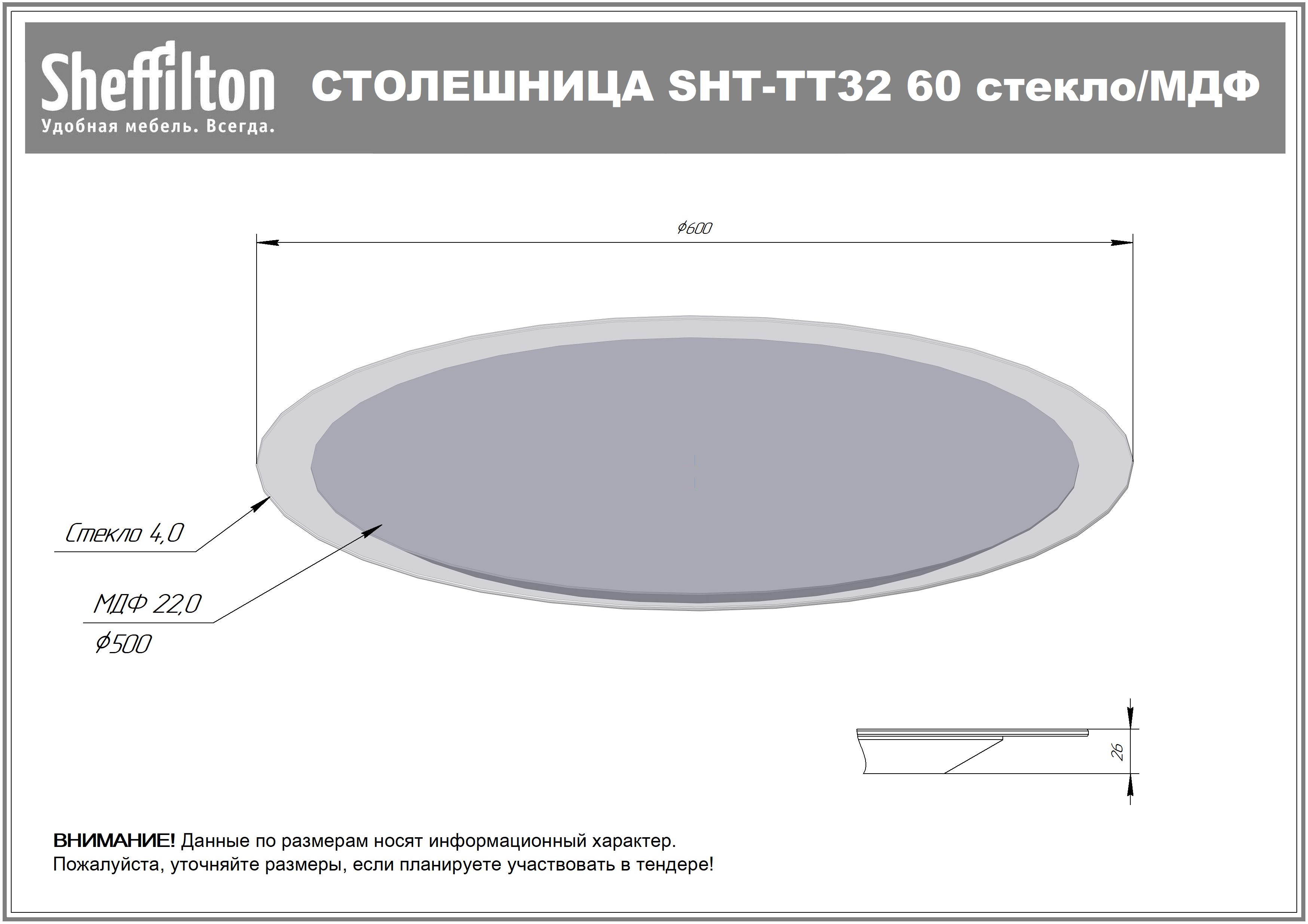 —Столешница SHT-TT32 60 стекло/МДФ
