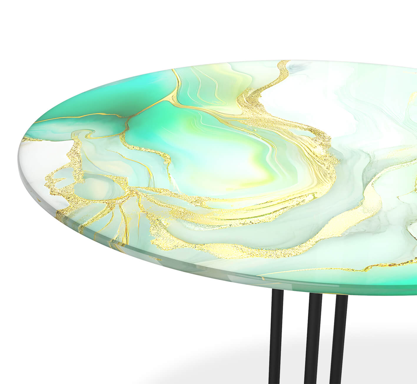Столешница выполнена из закаленного стекла с ультрафиолетовой печатью. Одним из главных преимуществ закаленного стекла является его стойкость к высоким температурам, вибрационным нагрузкам, ударам и царапинам. Также стекло обладает высокой ударной вязкостью - энергия от столкновения с бьющим предметом распределяется относительно продолжительное время (по сравнению с обычным стеклом), что приводит к разрушению на очень мелкие осколки. Металлический каркас окрашен порошковой краской, устойчивой к механическому воздействию.