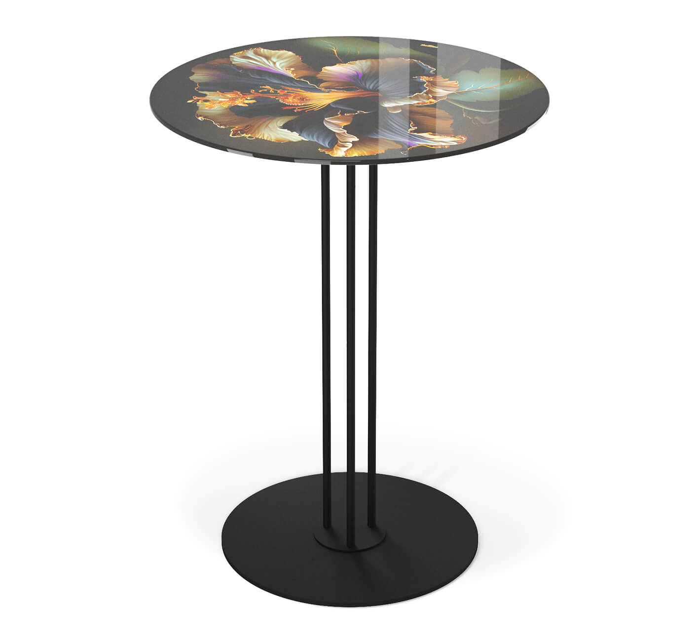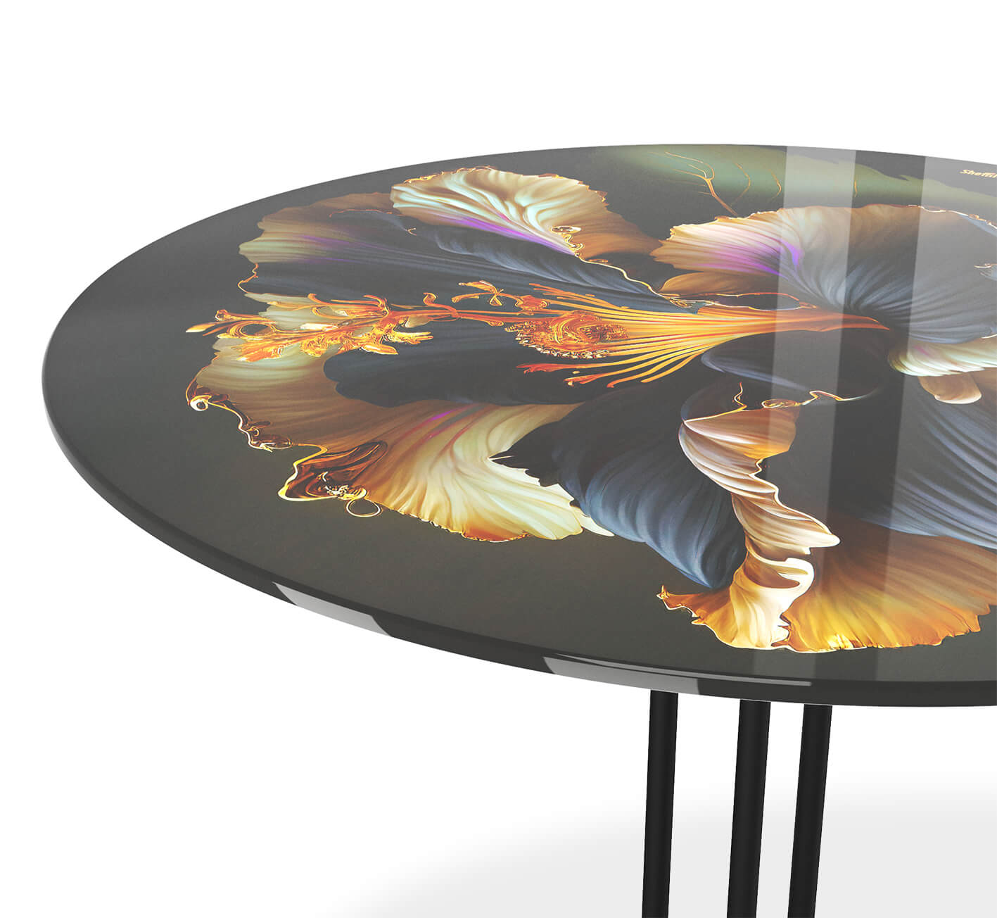 Столешница выполнена из закаленного стекла с ультрафиолетовой печатью. Одним из главных преимуществ закаленного стекла является его стойкость к высоким температурам, вибрационным нагрузкам, ударам и царапинам. Также стекло обладает высокой ударной вязкостью - энергия от столкновения с бьющим предметом распределяется относительно продолжительное время (по сравнению с обычным стеклом), что приводит к разрушению на очень мелкие осколки. Металлический каркас окрашен порошковой краской, устойчивой к механическому воздействию.