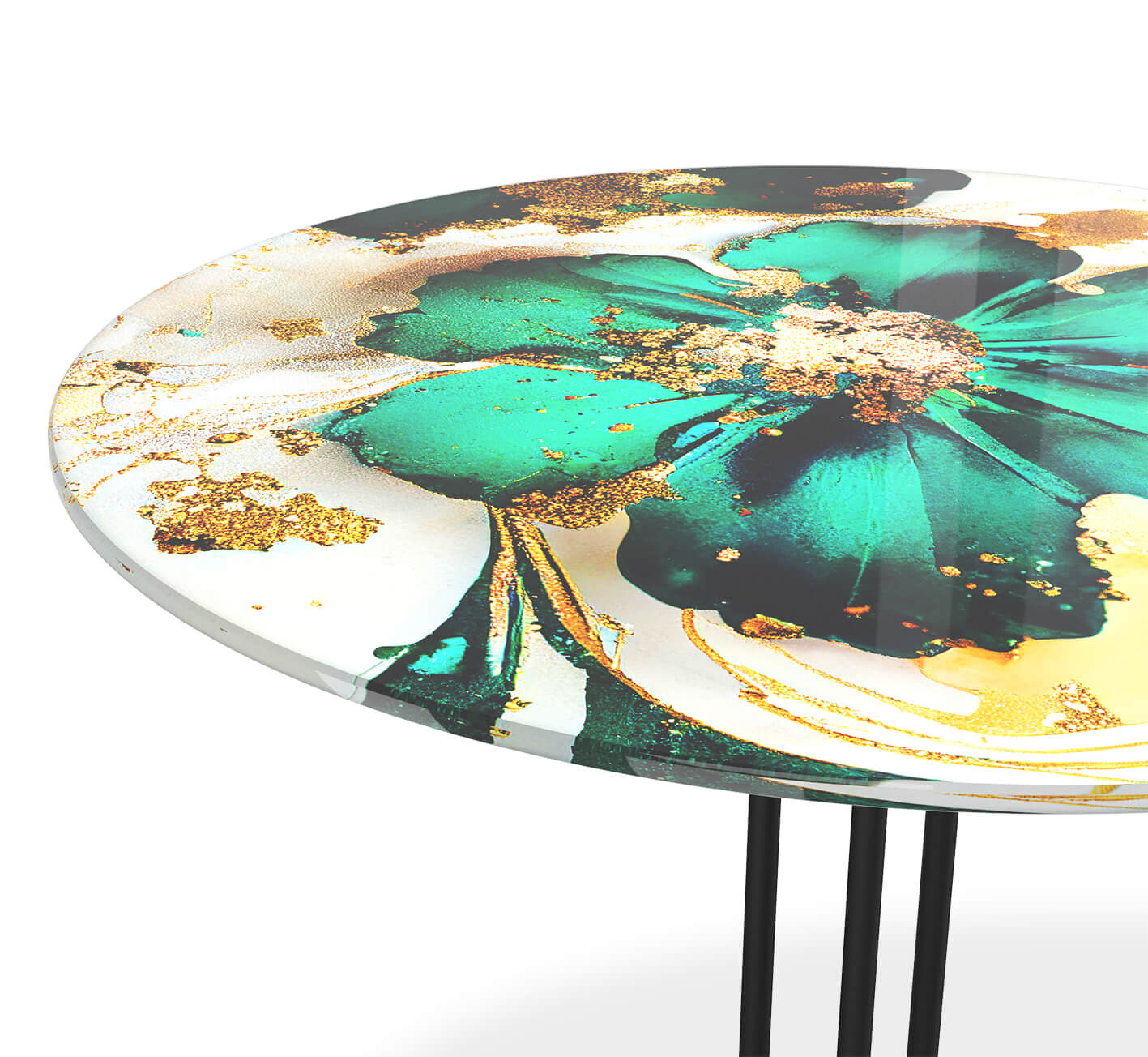 Столешница выполнена из закаленного стекла с ультрафиолетовой печатью. Одним из главных преимуществ закаленного стекла является его стойкость к высоким температурам, вибрационным нагрузкам, ударам и царапинам. Также стекло обладает высокой ударной вязкостью - энергия от столкновения с бьющим предметом распределяется относительно продолжительное время (по сравнению с обычным стеклом), что приводит к разрушению на очень мелкие осколки. Металлический каркас окрашен порошковой краской, устойчивой к механическому воздействию.