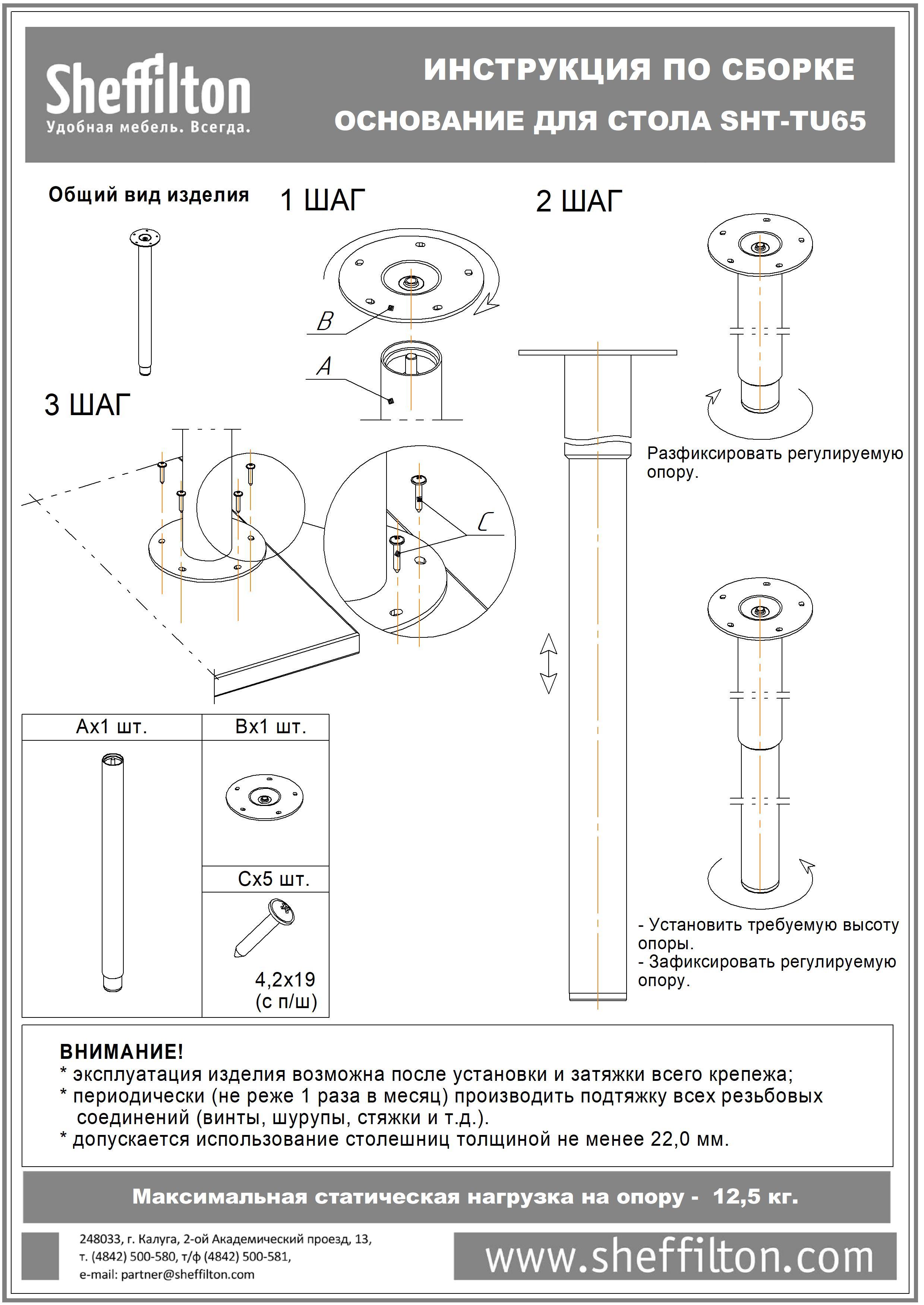 Максимальная статическая нагрузка на одну опору – 12,5 кг.