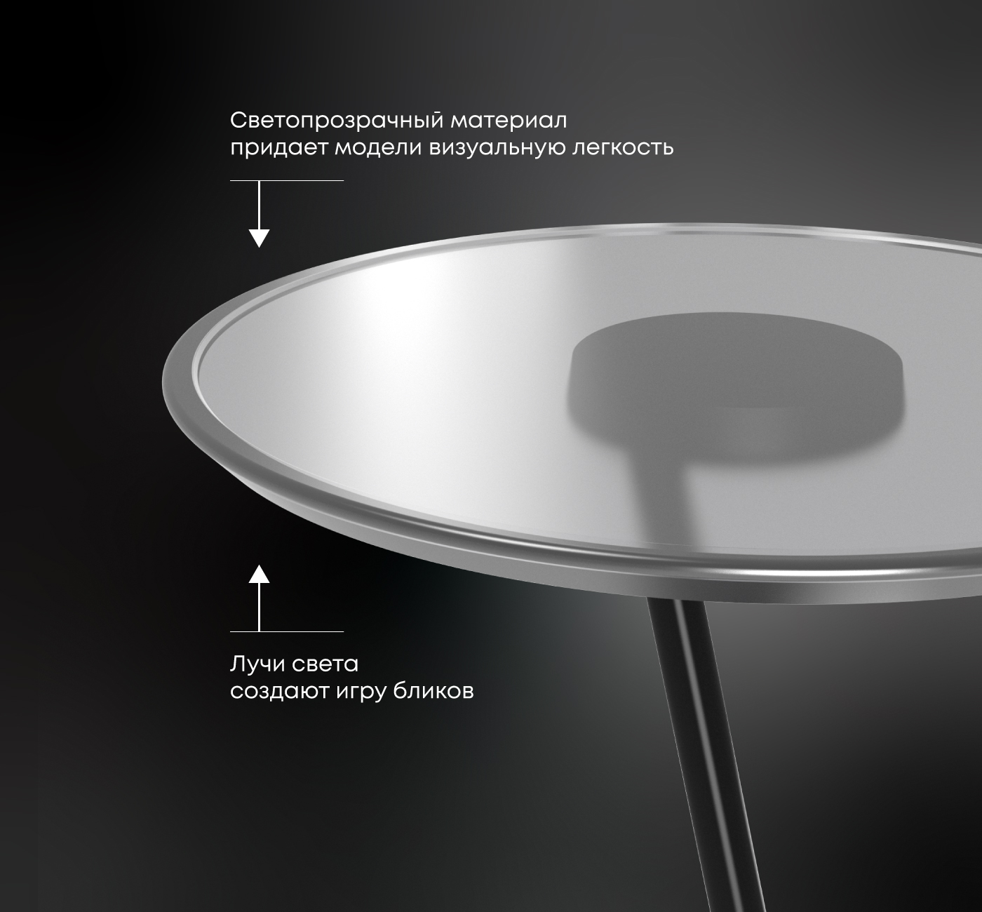 Конусное основание столика, не смотря на визуальную легкость, достаточно тяжелое, что обеспечивает отличную устойчивость.